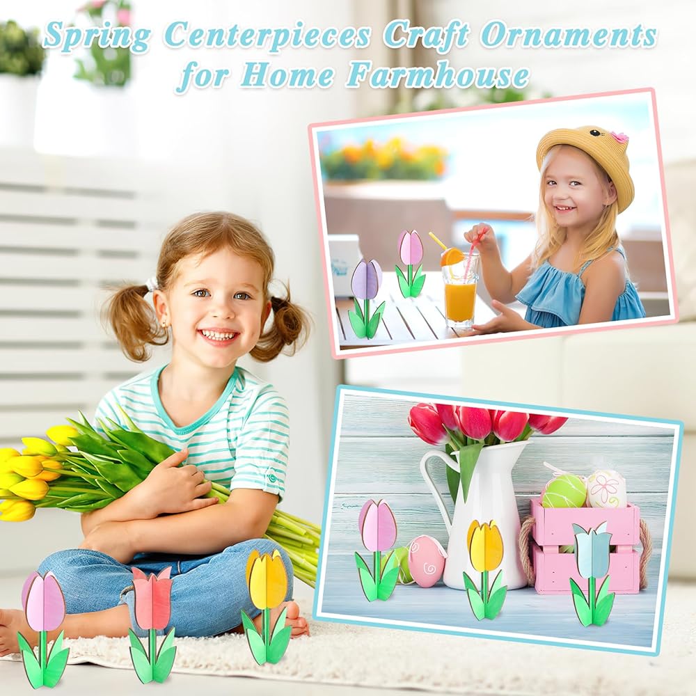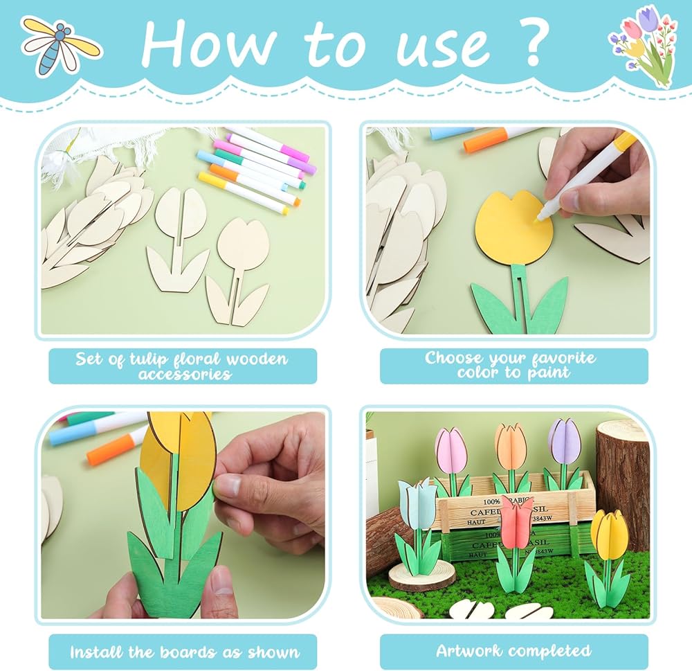 Wide of Use :Whether it's a rainy day activity or a break from screen time, our DIY Wood Flower Tulip Set is sure to delight you. Ideal for Mother's Day, farmhouse decor, spring parties, or as a craft kit for anyone who appreciates handmade wood products. Let them create their own charming DIY Mini Wood Flower Tulips