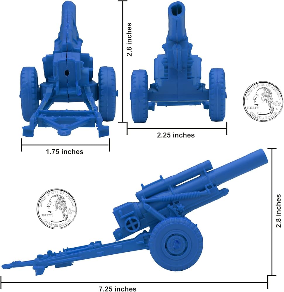 These Plastic Army Men accessories were first produced in 1958 by LOUIS MARX AND COMPANY for their legendary Battleground Military Playsets and were included in numerous sets spanning many years. The original version was spring loaded and was changed to a non-firing version later on to comply with safety laws. The axle was also changed at some point from a single metal axle to integrated plastic axles. These are some of the most iconic plastic army men accessories of all time, and this new production is manufactured using the original PL-934 mold.