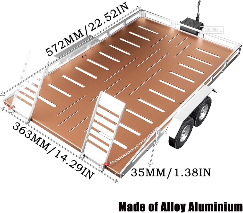 【Fit for】:The RC Flatbed Trailer Kit Upgrade Parts fit for for 1/8 1/10 RC Crawler TRX4 TRX6 Axia1 SCX10 D90 Wrangler Redcat GEN8.