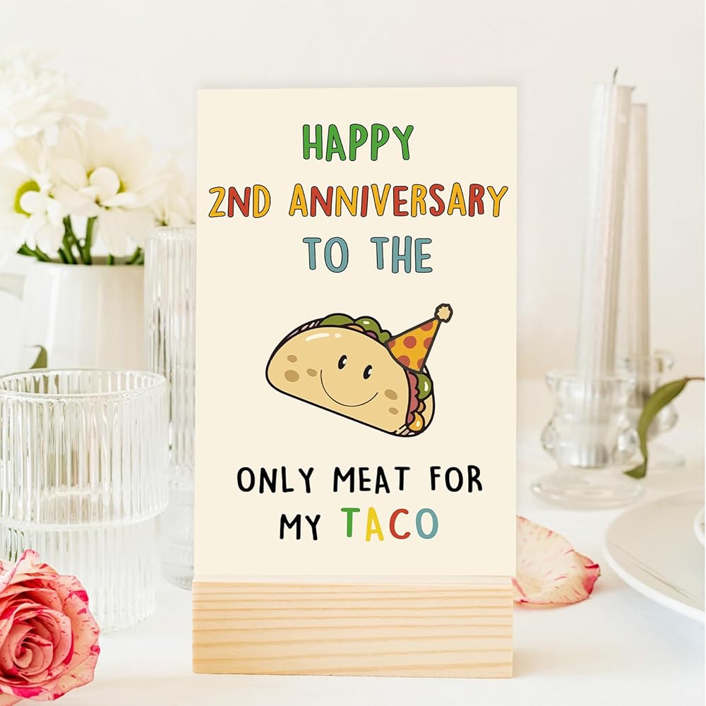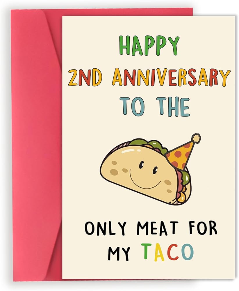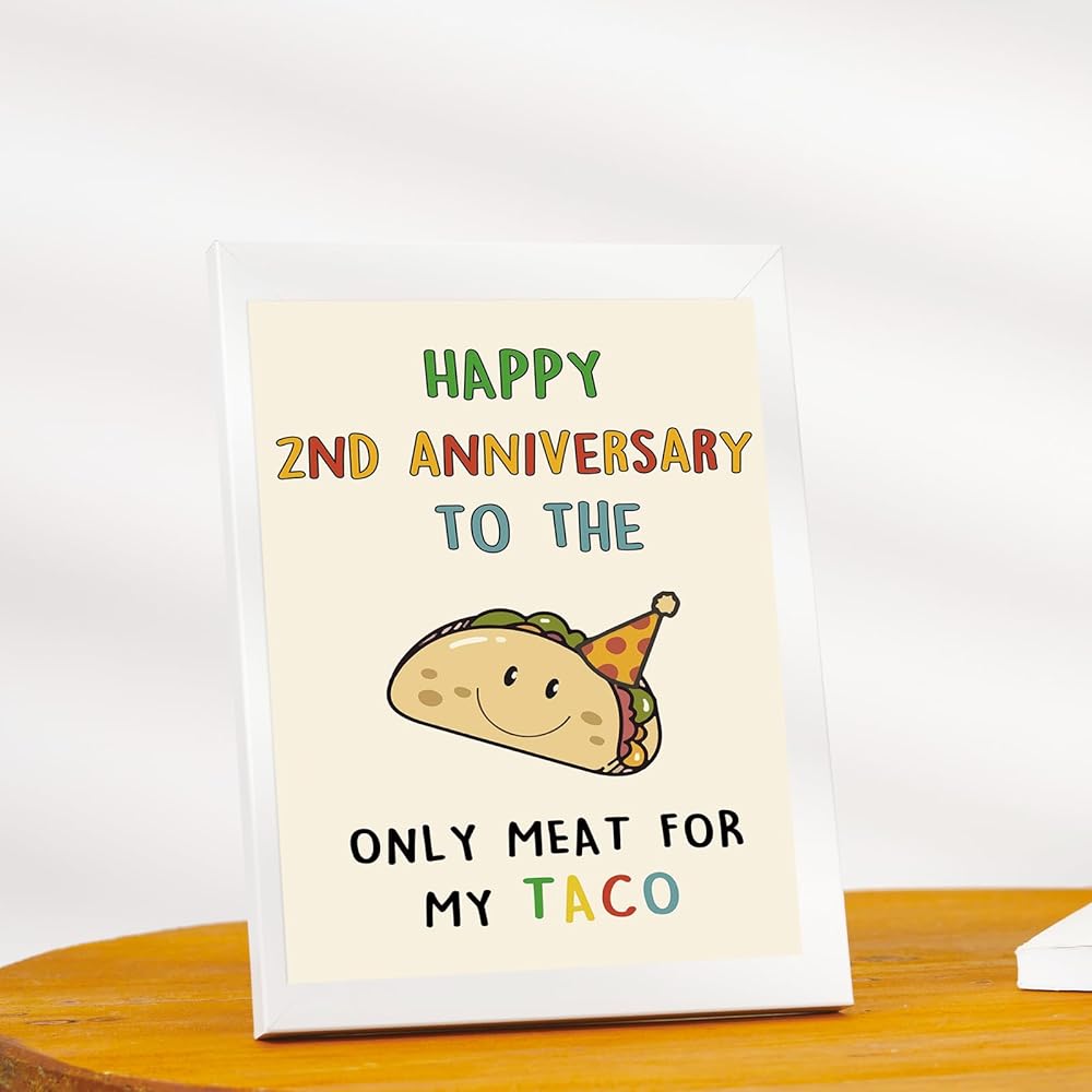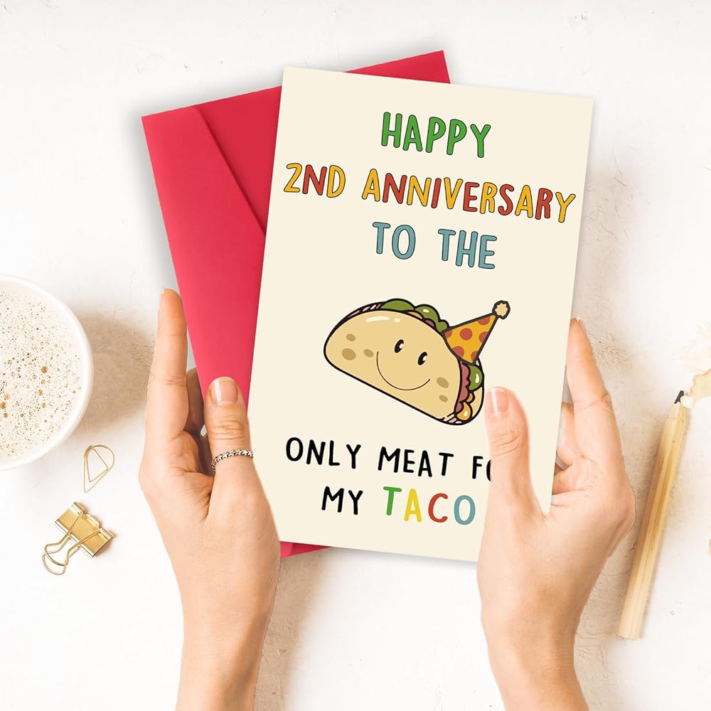 OJsensai Cute Taco 2nd Anniversary Card for Him, Cotton Wedding Gifts for 2 Years Anniversary, Happy 2 Years Anniversary for Husband Boyfriend