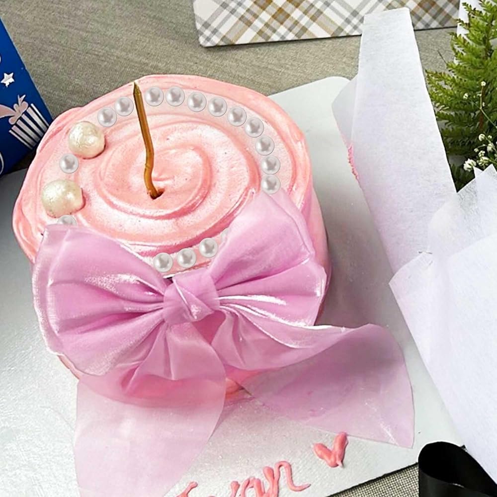Pink Cake Topper:you will receive 1X fish line pearl strand, 1X pink gauze bow