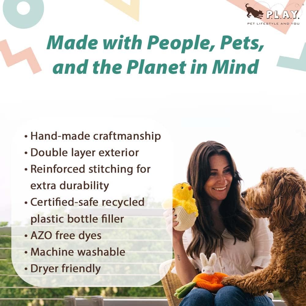 Planet Friendly: Each P.L.A.Y. plush toy is hand-crafted with AZO-free dyes and certified-safe Planet Fill filler made from 100% post-consumer recycled plastic bottles. All of our toys meet the same strict quality standards for manufacturing infant and children products.