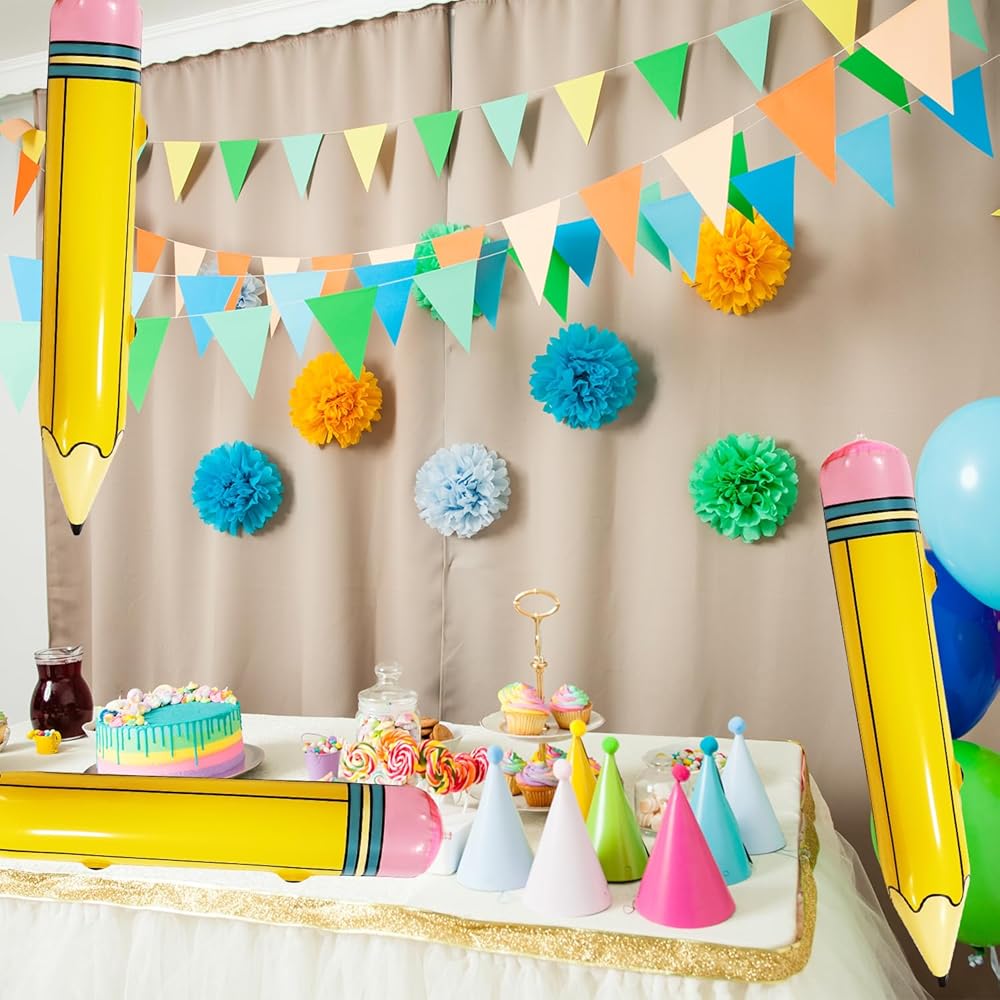 ✏️Pencil Shaped Design: Adopting a vibrant pencil shape design, these inflatable giant pencils are a confluence of numerous colors such as vivacious yellow and pretty pink that capture the essence of creativity; This multicolor scheme not only adds to the aesthetic appeal but also positivity and liveliness, adding charm to your celebrations.