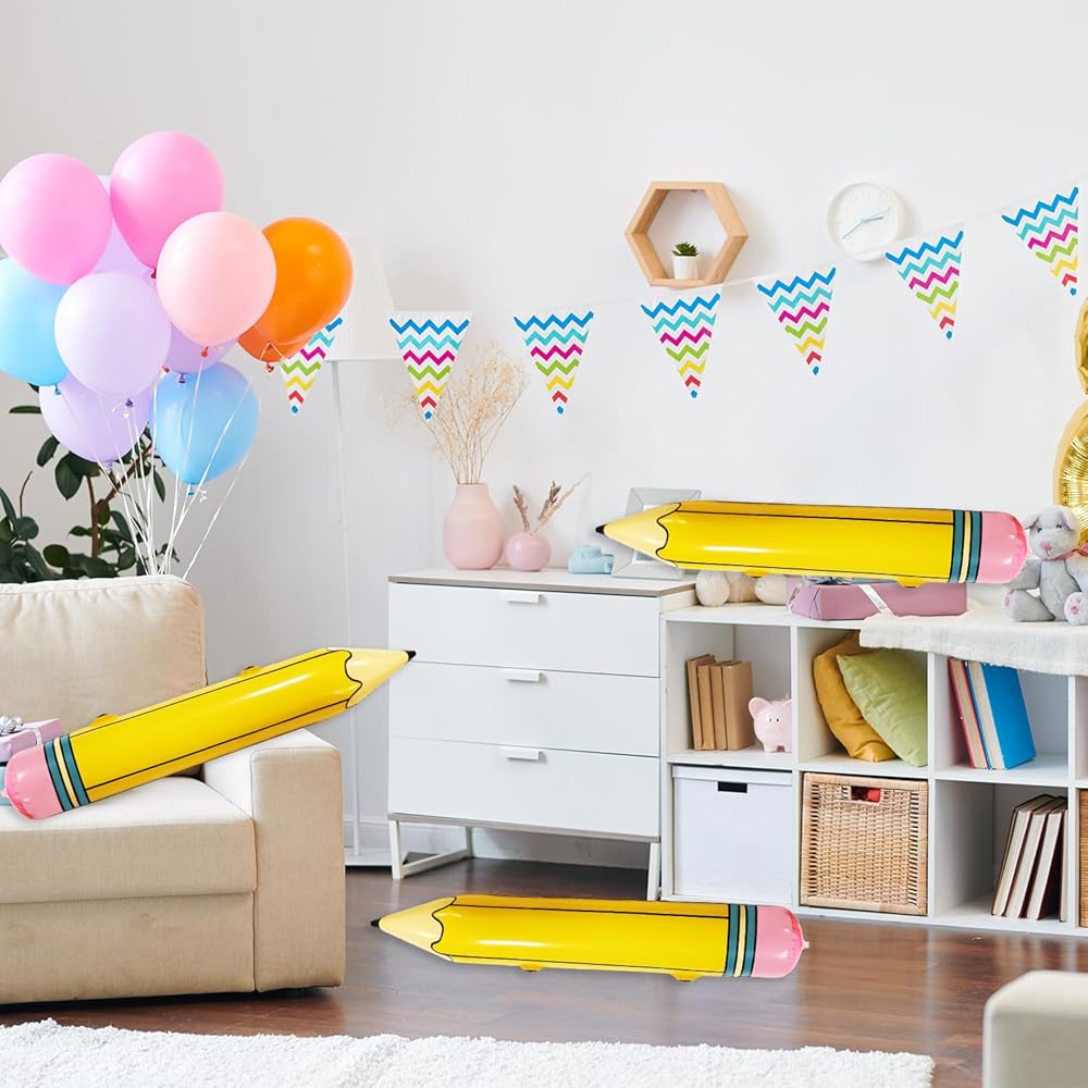 ✏️Versatile Decoration Piece: If you are planning a back-to-school classroom party, a class reunion, school fair, or just looking for some quirky classroom prizes, these large inflatable pencils deliver; Their distinctive design combined with their impressive size makes them the ideal decorative feature for a variety of school related events.