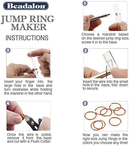 Creating your own jump rings is a matter of having a precisely measured mandrel and a method to quickly and easily wrap your wire around it. The Badalona Jump Ring Maker features an acrylic base and interchangeable mandrels. Choose your size and screw the mandrel into the base. Insert one end of the wire into the small hole in base. Bend wire to secure it and then wrap it around the mandrel. Carefully remove coils and cut evenly with sharp flush cutters. Create jump rings with any wire you choose, including colored craft wire.