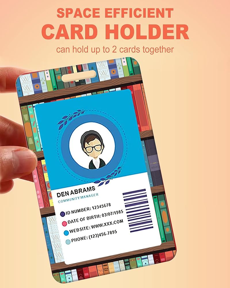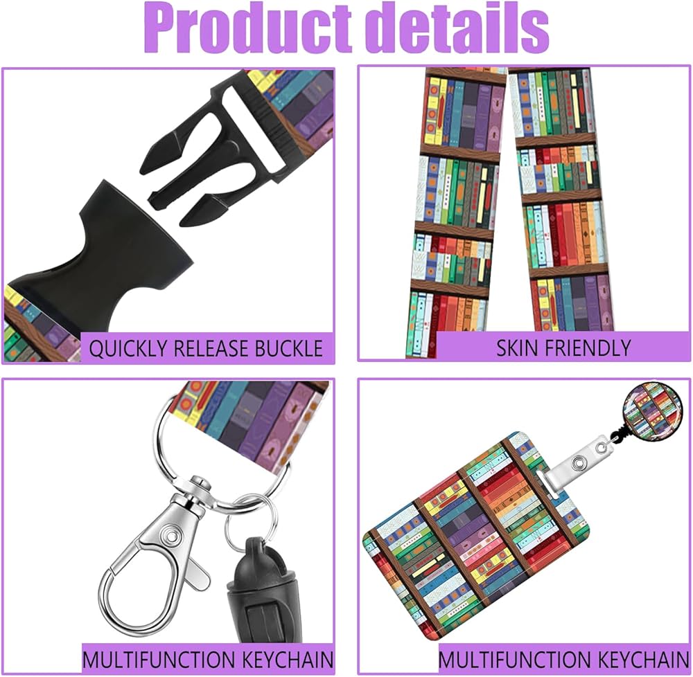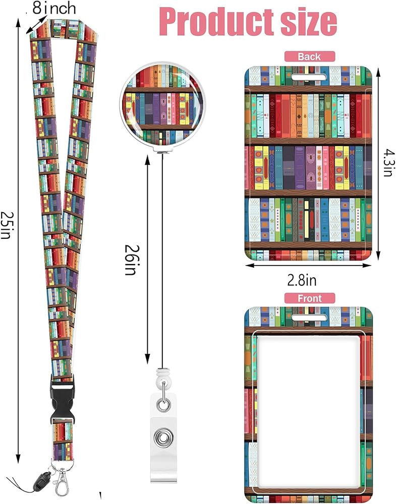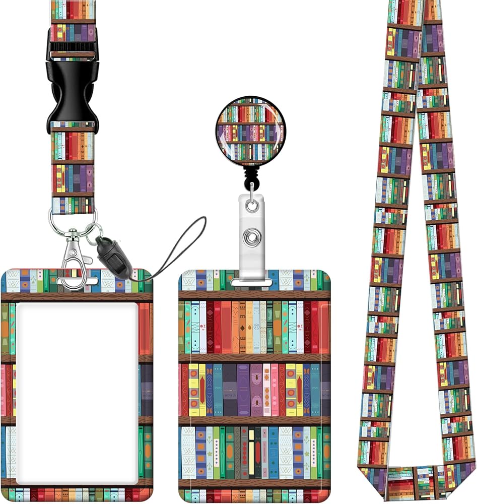 Badge Reels Retractable with Carabiner Reel Clip, ID Name Tag Work Badge Holder Belt Ferrule, Identity ID Badge Holder Cover Case for Office Work Nurse Teacher Student Gifts(Book Library)