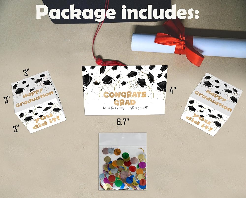 Graduation Explosive Money Box: The set includes 2 small bounce boxes, 1 envelope gift box, and 1 pack of confetti. When the recipient opens this surprise gift, they will have an unforgettable experience.
