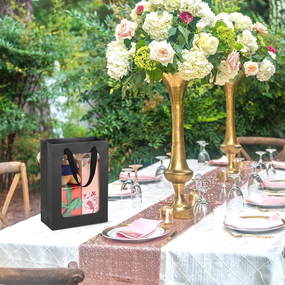 【Multiple Colors】 Choose from black, white, pink, or natural brown gift bags with handles in a size of 7.8"x3.9"x11" to fit any gift and occasion.