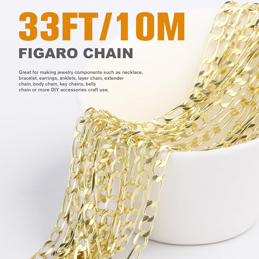 Easy to Use: Very convenient to store, figaro chain in a roll, and link chains can be cut to any length you desire.
