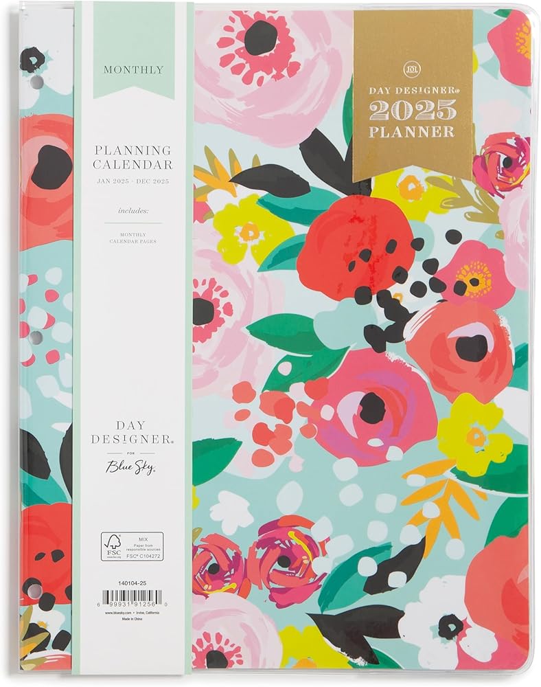 Blue Sky Day Designer 2026 Monthly Planner Calendar, January 2026 - December 2026, 8.5" x 11", Clear Flexible Cover, Stapled Binding, Secret Garden Mint