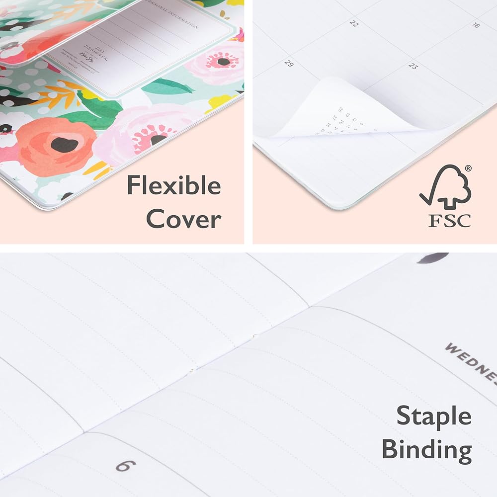 Printed on FSC-certified paper for clean writing space, with premium quality covers in a floral pattern that withstand constant use throughout the year