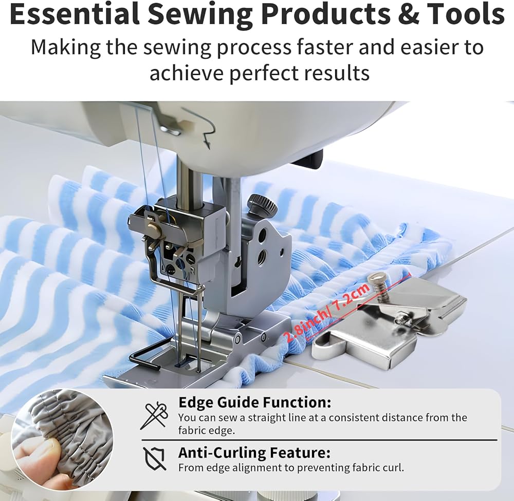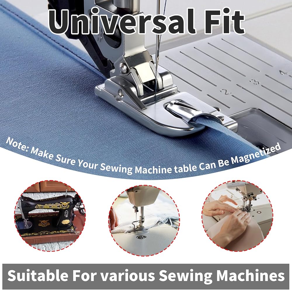 【Universal Fit】This sewing guide is applicable to various sewing machines, such as home sewing machines, overlock machines, etc. (Before purchasing, please check if there is a metal plate behind the pressure foot of your sewing machine). The sewing guides can be used for curling edges, straight sewing, buttonholes, gathering stitches, and marking fabric patterns