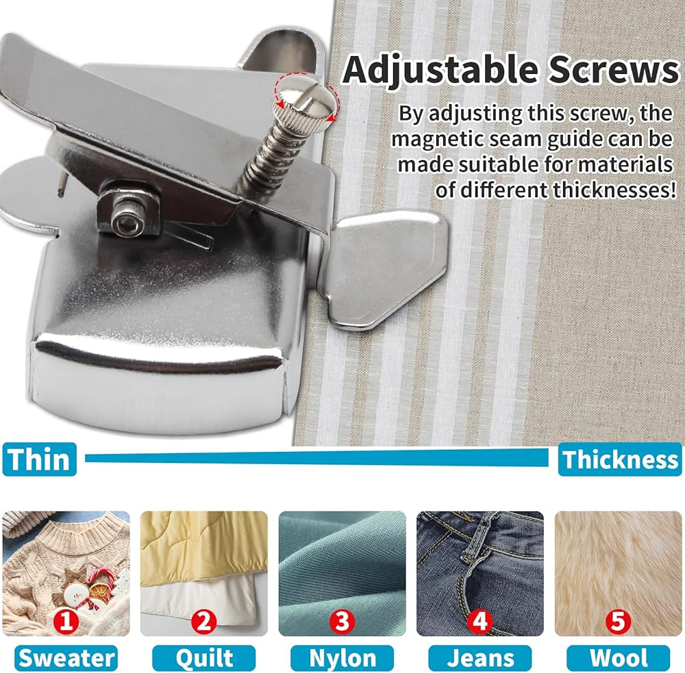 【Easy To Install And Adjust】The big magnet is sturdy enough to firmly secure in place and prevent slipping during sewing. Simply lifting and relocating the guide to adjust it to different seam allowances, which is fast and simple, saving time and improving work efficiency