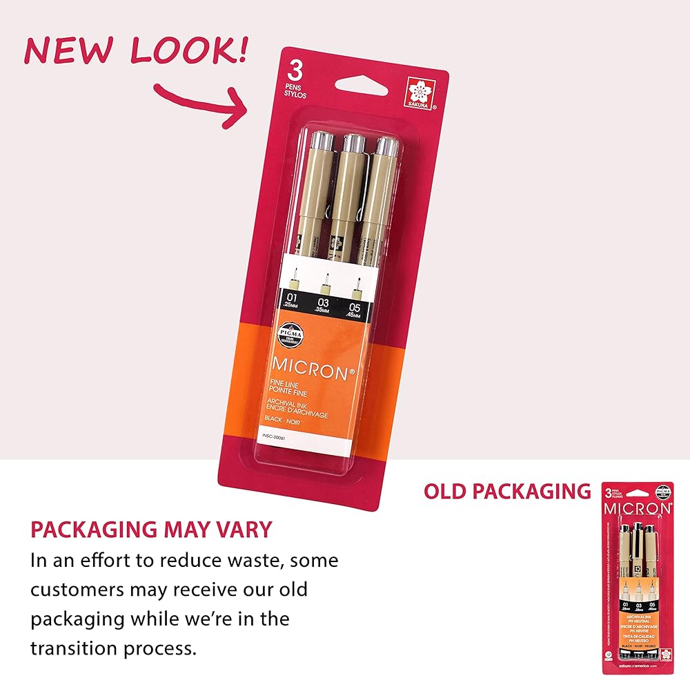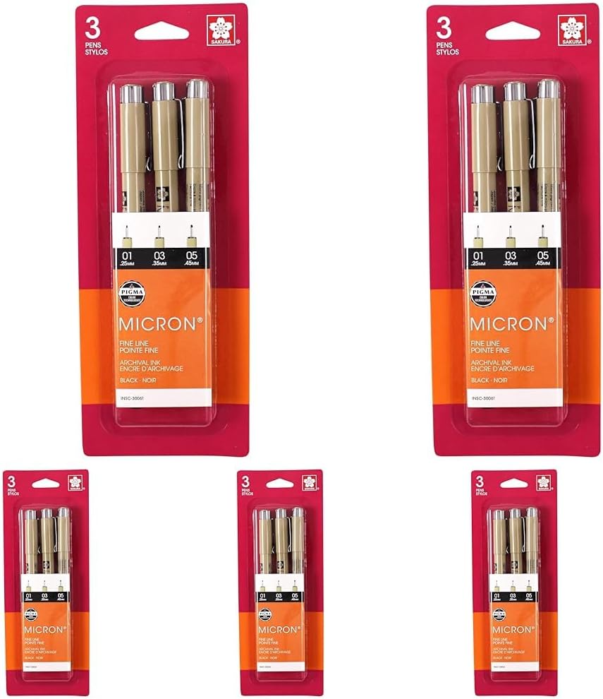 When accuracy, minute details and preservation count, the unparalleled archival quality of pigma micron pens makes them everyone's first choice. Artist, writers and illustrators reach for pigma micron and know their work is safeguarded with the permanence of pigma ink. Experience smooth, skipfree writing and crisp ink colors that leave consistent lettering and lines every time. It has achieved universal appeal and is carried by technical professionals, artists and crafters alike anthropologists, entomologists, scientists, research laboratories, archivists, architects, professional diamond cutters, cartoonists, manga and anime artists, illustrators, heirloom quilters and decorative fabric artists. Features archival quality ink for use in acidfree environments, chemically stable, waterproof, fade resistant, no smears, feathers or bleedthrough on most papers. Applicable for graphic art, scrapbook, archival recording, pen and ink illustrations, freehand art, rubber stamps, cartooning and fabric design. Technical qualities are archival quality pigma ink, six point sizes, no smear or feather when dry, waterproof and chemical proof, fade resistant, does not bleed through most papers, meets astm and acmi nontoxicity standard and not evaluated for cosmetic use on skin. Contains 3 different nib sizes for precise line width are 0.25mm, 0.35mm and 0.45mm approximately. Available in black color.
