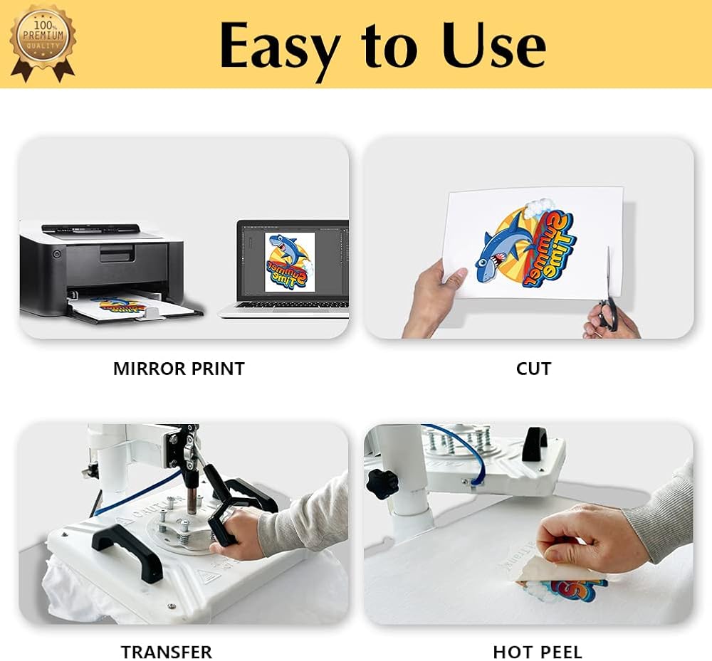 💕EASY TO USE: [1] Print & Cut out the image. [2] Peel & Place the printed image facing UPWARD onto fabric and cover the image with Teflon Paper. [3] Transfer Image with Professional Heat Press Machine. [4] Remove the Teflon paper. Transfer has been done! Step-by-step instructions