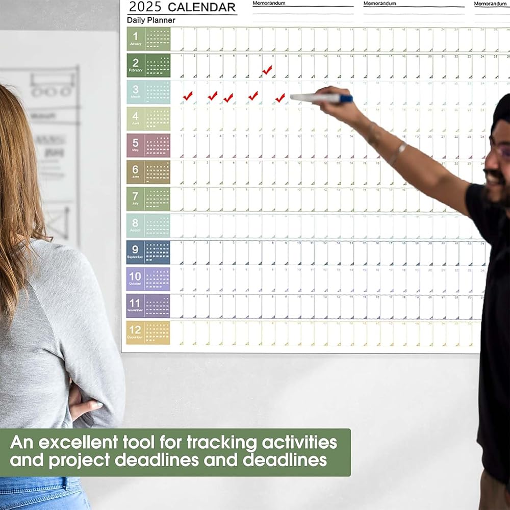 📋 Easy to Use: You can check your schedule clearly and efficiently on this large wall calendar without turning pages and is a great choice for those who need to view multiple months at once, making it easier to plan or schedule events. Its thickness and smooth white matte surface ensure bleed and smudge-free writing, making sure that your calendar is neat and presentable on your desk.