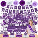 MATERIAL: Our colorful happy retirement banner and retired sash are made of polyester, sturdy, washable, reusable, and non-tearing. Retirement table centerpieces, swirls, and pompoms are made of paper. All the retirement party decorations will make a retirement party special