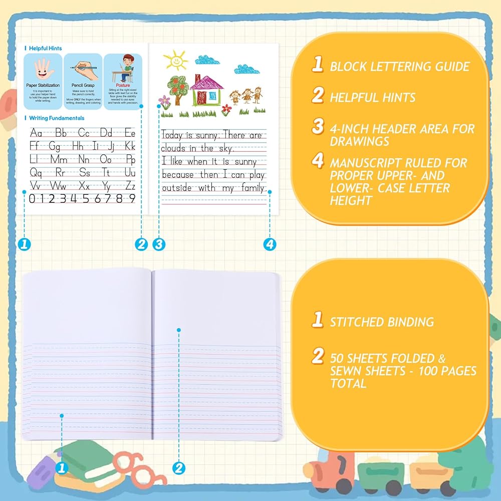 Crafted with nice material that withstands everyday handling, this pre k primary journal serves ideal as a handy jotter for school projects, a diary for thoughts, or even a platform for drafting homework. It ensures the longevity of your child's work, making it possible to look back and admire their early scrawlings.