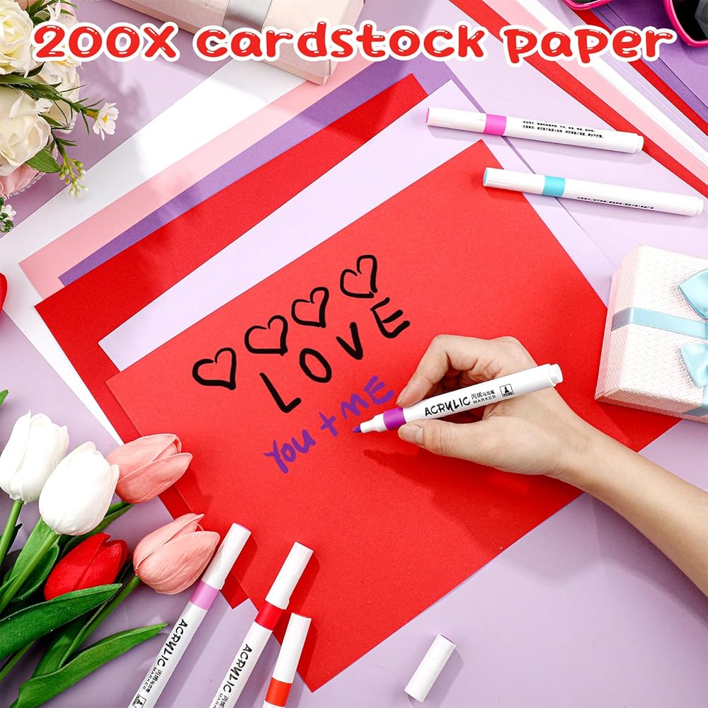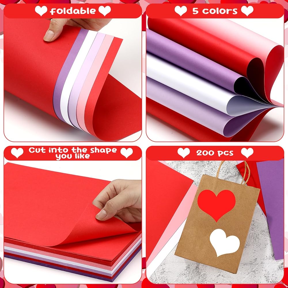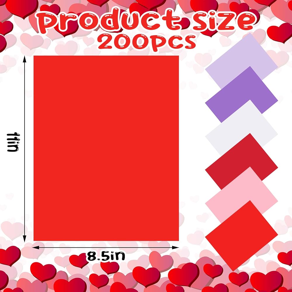 Dispowreath 200 Sheets Valentines Cardstock 8.5 x 11'' Red Pink Paper Valentine Scrapbook Paper for DIY Art Craft Valentine‘s Day Cards Invitation Making Supplies(Valentine‘s Day Color)