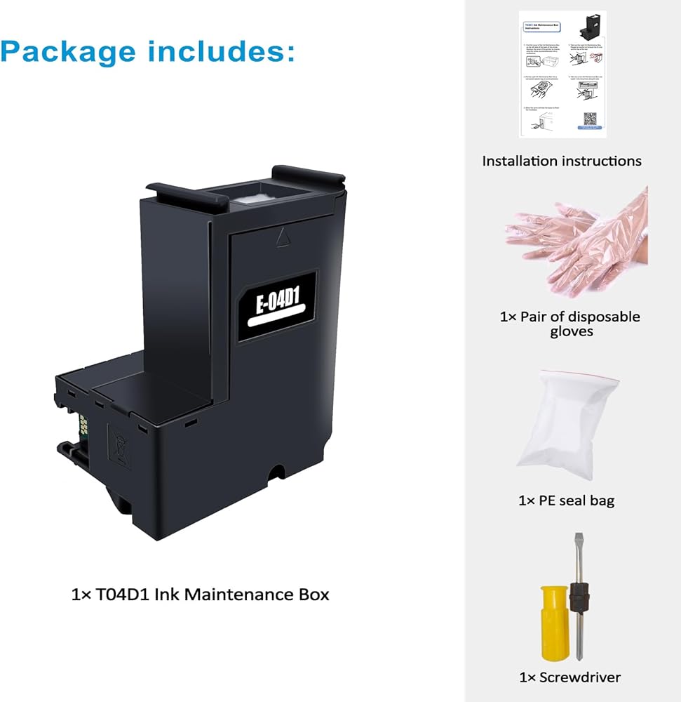 Tested before packaging: Our T04D1 Maintenance Box is manufactured in ISO9001, ISO14001, SGS and CE Certified Facility, keep your printer has a fluent, stable and superb printing performance