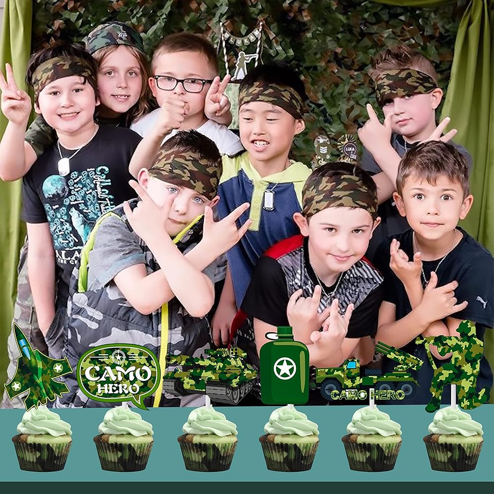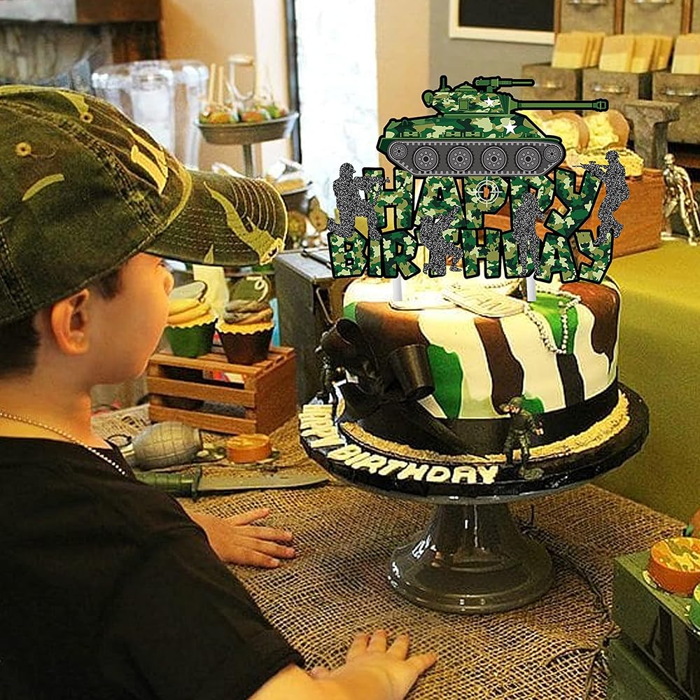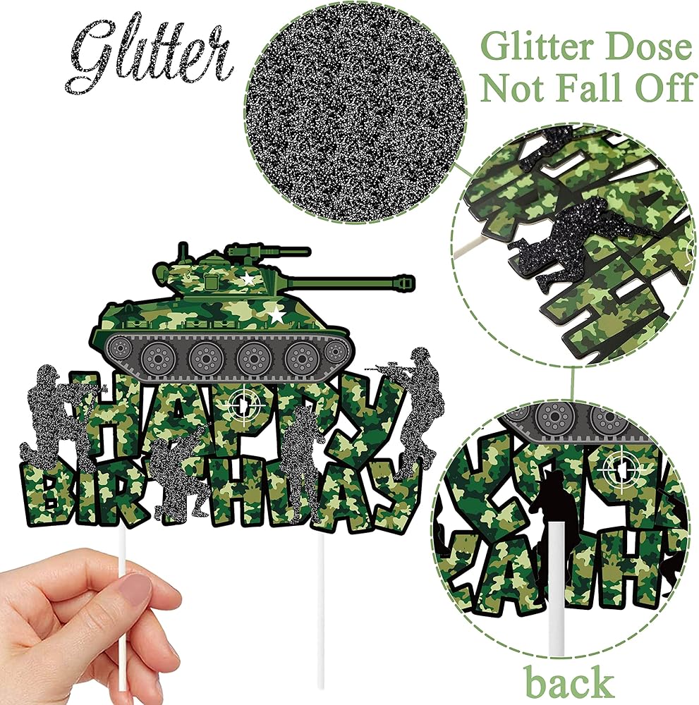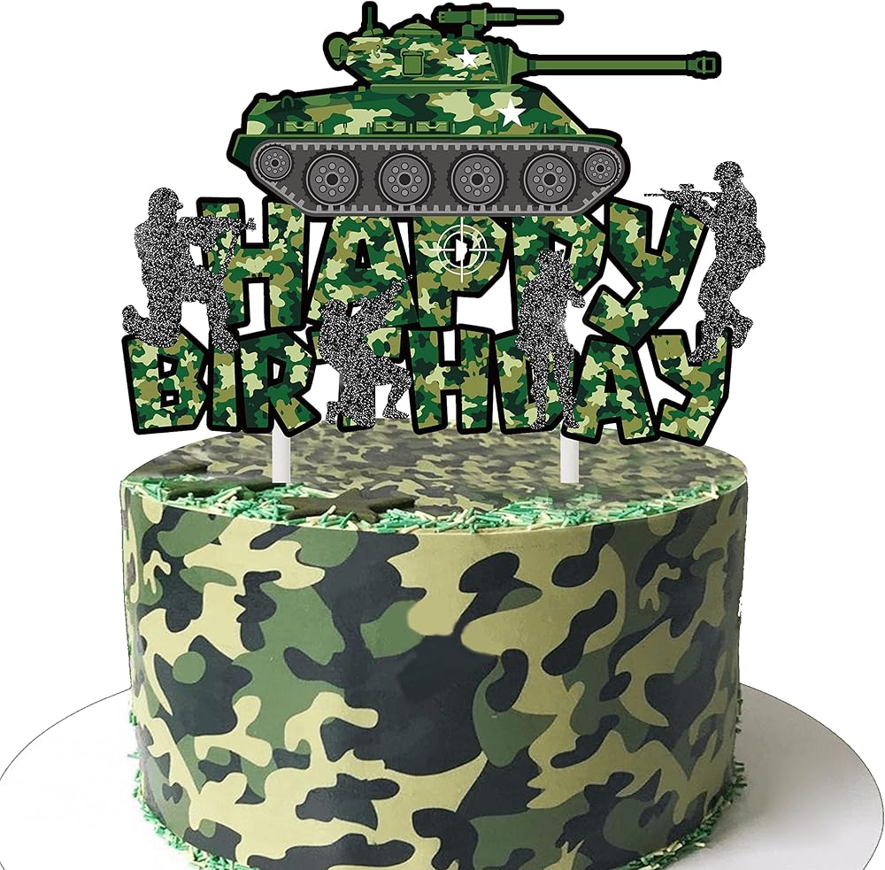 Package includes 1pcs camo cake topper and 36pcs camouflage party cupcake toppers. Classic cool camouflage theme element patterns, such as tank, soldier, helicopters, grenades, binoculars, army water bottles, etc. Let you immersed in the mysterious atmosphere of the camouflage world. Cool multi-style design to meet your various party needs, such as camo party, soldier theme party, tank theme party, military party, birthday party, baby shower and so on. Add more fun and charming atmosphere for your party.