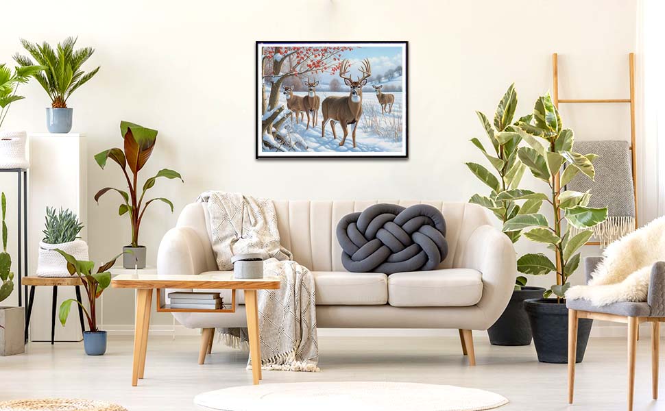 Kaliosy 5D Diamond Art Kits for Adults Deer by Number Kits, Diamond Painting Art Snow Scenery DIY Full Drill Crystal Craft Cross Stitch Embroidery Decoration (12x16 inch) 30x40 cm