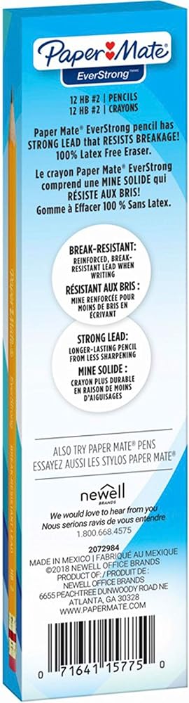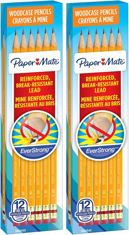 Get more out of your pencil with Paper Mate Ever strong #2 pencils! These wood case pencils feature reinforced, break-resistant lead when writing, so they need less sharpening and last longer. The wooden pencils also feature 100% latex-free erasers.