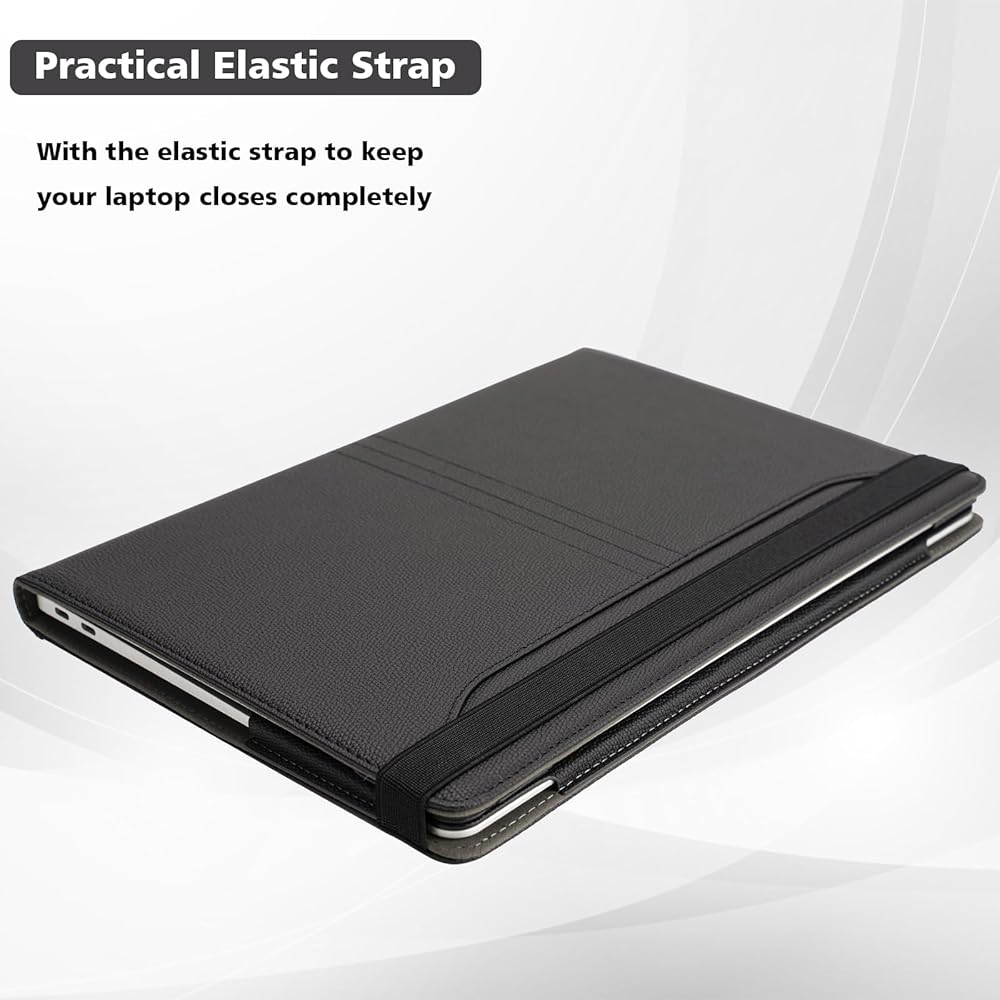 [Elastic Strap] With the elastic strap to keep your laptop closes completely, you can safely put it into your backpack. When use the laptop, you could put the strap on the bottom
