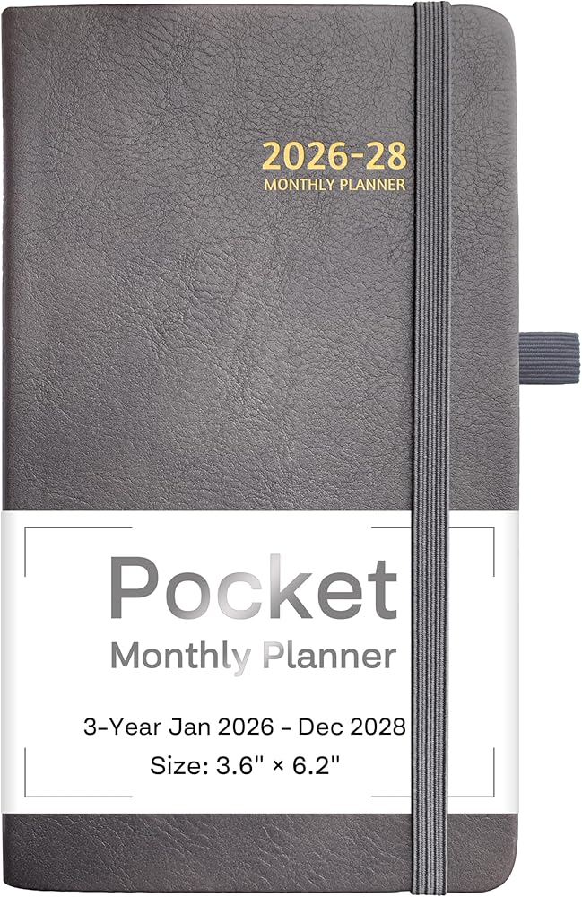 2026-2028 Pocket Monthly Planner, 3 Year Calendar 2026-2028, 6.2’’ x 3.6’’, Small Calendar 2026, 36 Months from Jan 2026 - Dec 2028, Hardcover, Back Pocket, Thick Paper, Lightweight to carry, Grey