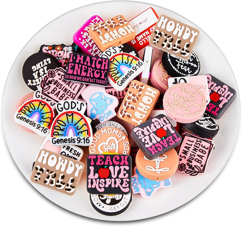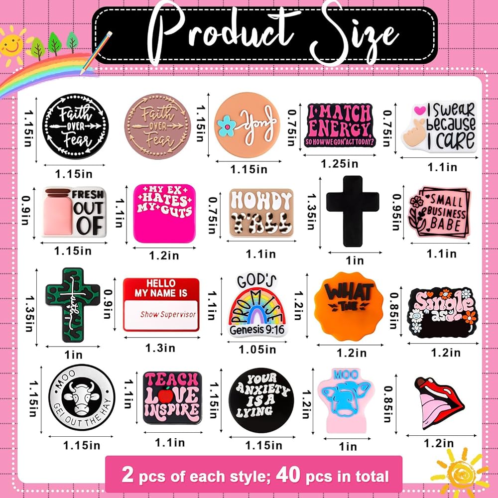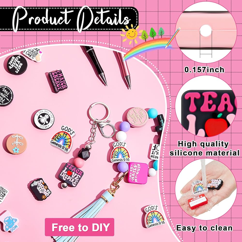 Generously Sized Package: every package includes 40 focal silicone beads come in 20 different styles, giving crafts an ample supply for numerous projects; There's plenty of opportunity for creative patterns and combinations; Note that the keychain shown in the picture is not included