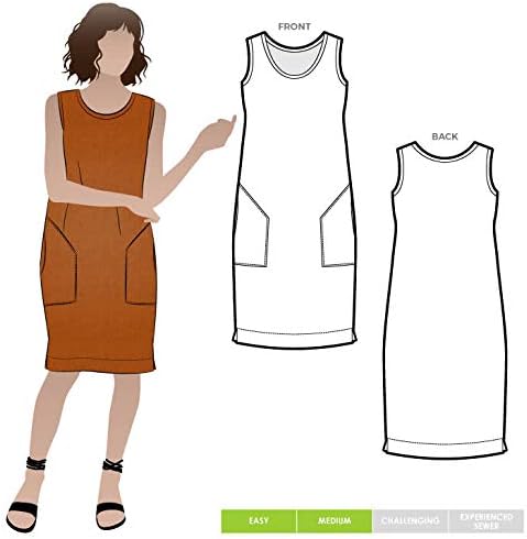 This is a Style Arc sewing pattern for a fabulous stylish shift dress, perfect for those summer months. The slight cocoon shape allows for easy movement and comfort. The neck and armholes are finished with narrow bias bands, so why not use a contrast colour or print to create your own personal look? The large angled pockets along with the wide hem and side spits complete this summer staple dress. FABRIC SUGGESTIONS: Linen, crepe, rayon, cotton. FABRIC ESTIMATE: Fabric Width: 148 cm (58 in) > Sizes 4 - 10: 1.5 m (1.6 yd) > Sizes 12 - 18: 1.75 m (1.9 yd) > Sizes 20 - 30: 2.5 m (2.75 yd). FUSE / STABILISER FOR NECK-HOLE AND ARM-HOLE GUIDES (width 90 cm or 36"): 15 cm (6")
