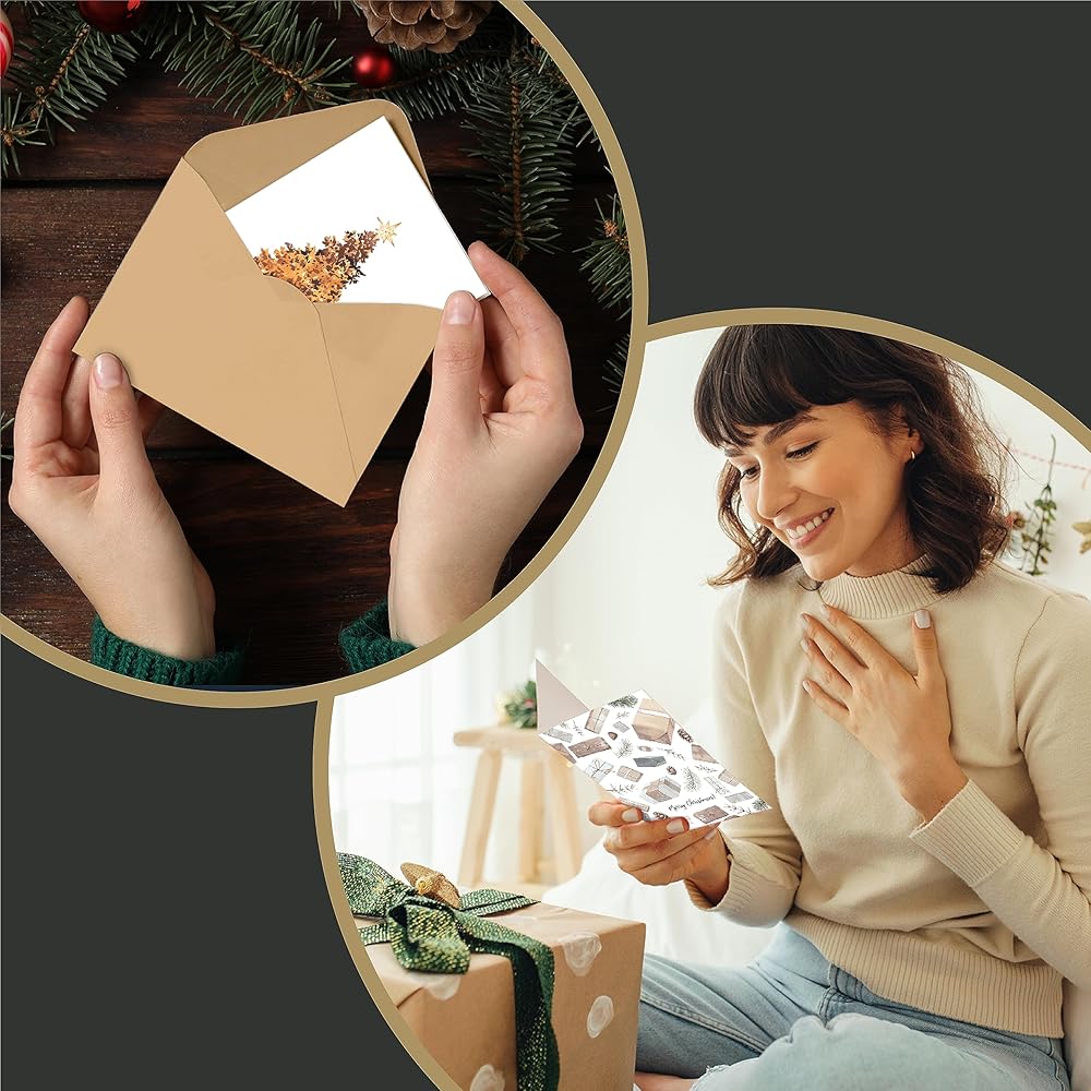 CARD SIZE – Your sentiment statements to make your loved ones feels special are featured in this 5.5 x 4 inch notecards. Sized perfectly for all those sweet and humorous Xmas greetings and messages. All that's left to do is to personalize each card to match that winter sentiment. Perfect for Christmas Theme Card lovers.