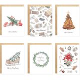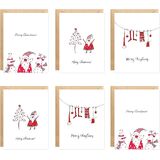 easykart labels 24 Christmas Cards Assortment with Envelopes & Sealing Stickers, Christmas Boho Theme 6 Designs, 5.75" x 4.25" For Friends, Family and loved Ones