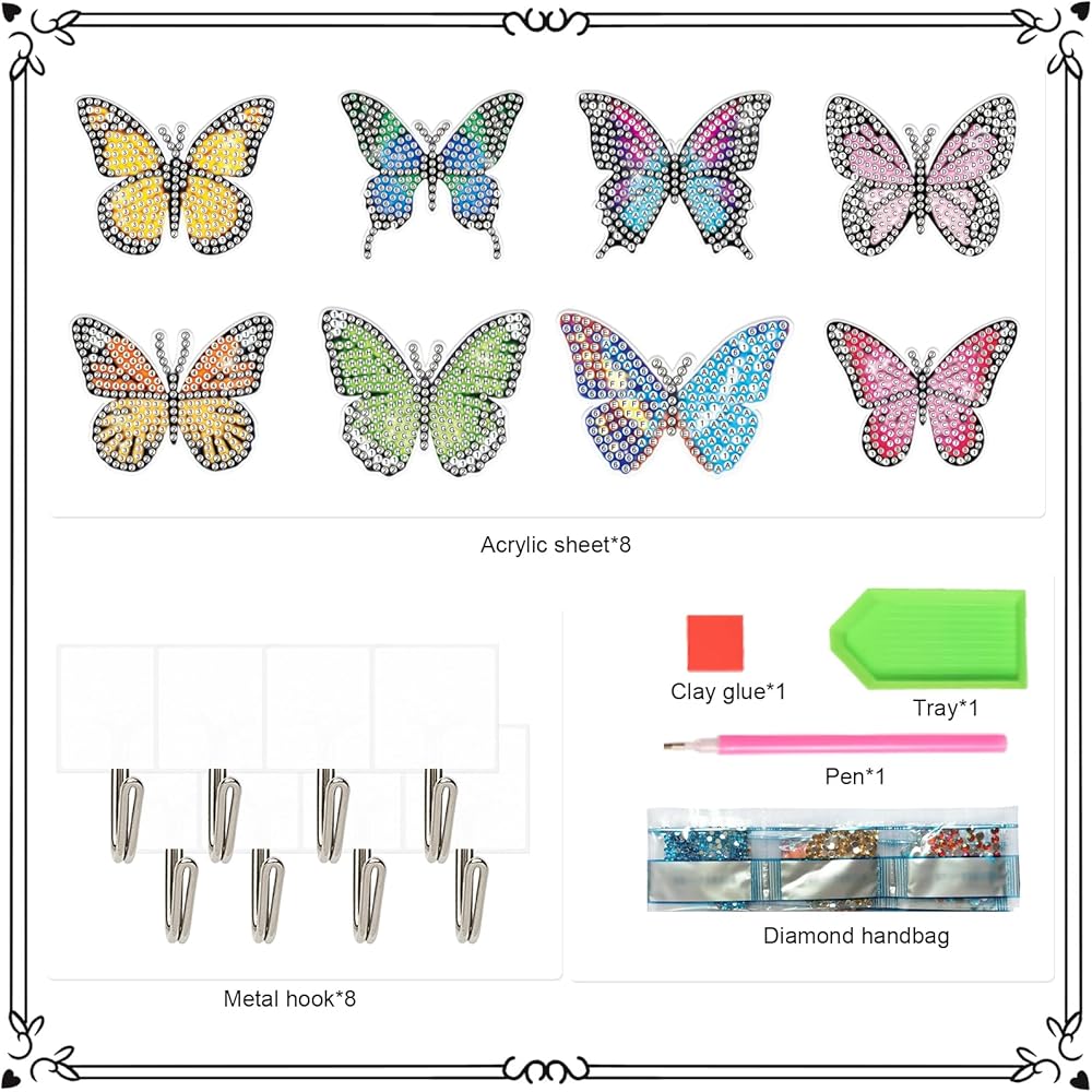 Packaging Content: You will receive a complete set of 8 diamond painting hooks, featuring a variety of charming designs. With ample quantity and diverse styles, it perfectly caters to your daily usage and replacement needs