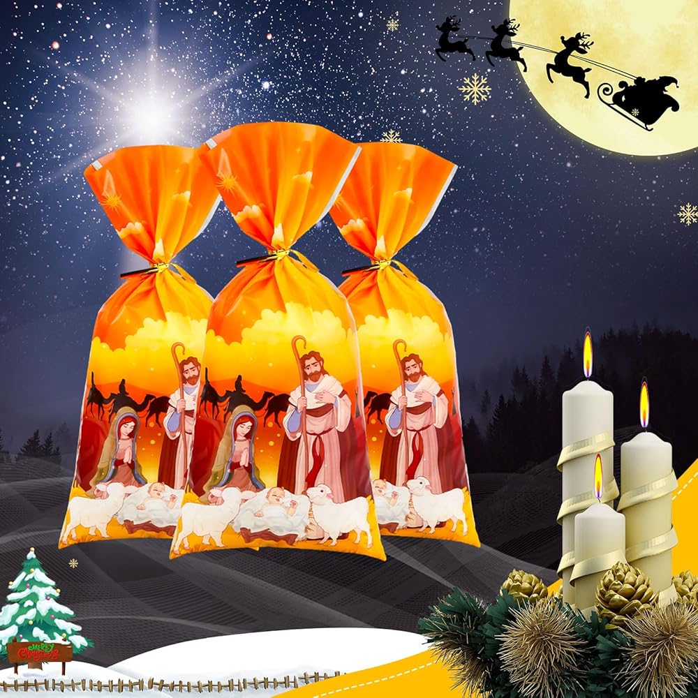 These holy nativity favor bags are measuring approx. 5 x 11 inches, proper size allows you to easily help you wrap gifts, suitable for party supplies and Christmas holiday decorations.