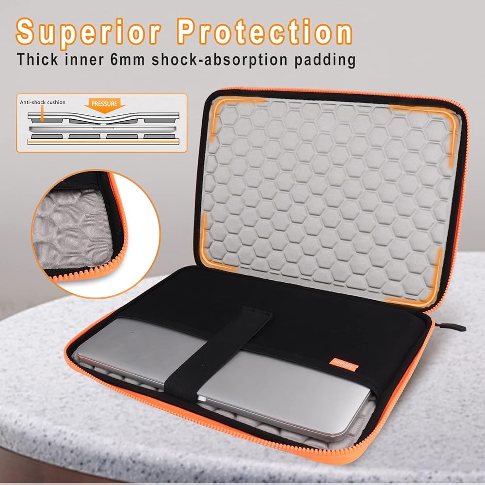[Super strong buffer protection design] Waterproof and scratch resistant hard shell design can protect notebook computers from damage; High rebound EVA filled in the middle will disperse the computer and cause it to be squeezed. The interior uses ultra soft Lycra fabric to contact the computer, ensuring that the fabric is soft and does not scratch the computer. Due to the particularity of the material, it will have some odor. The odor will gradually weaken and disappear after a few days of use.