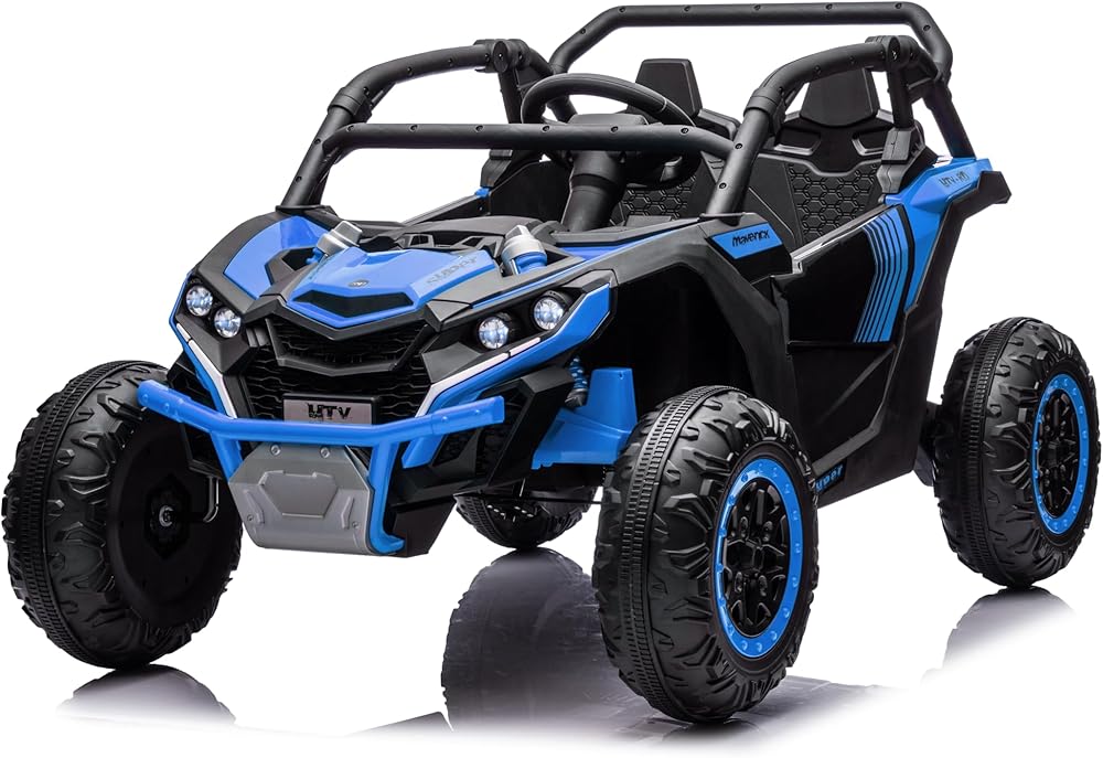 Enhanced Safety and Comfort:Designed with four shock absorbers, this electric UTV offers a smooth and comfortable ride, even on bumpy surfaces. The spacious seating allows two kids to ride together, while secure seat belts ensure safety during every adventure.
