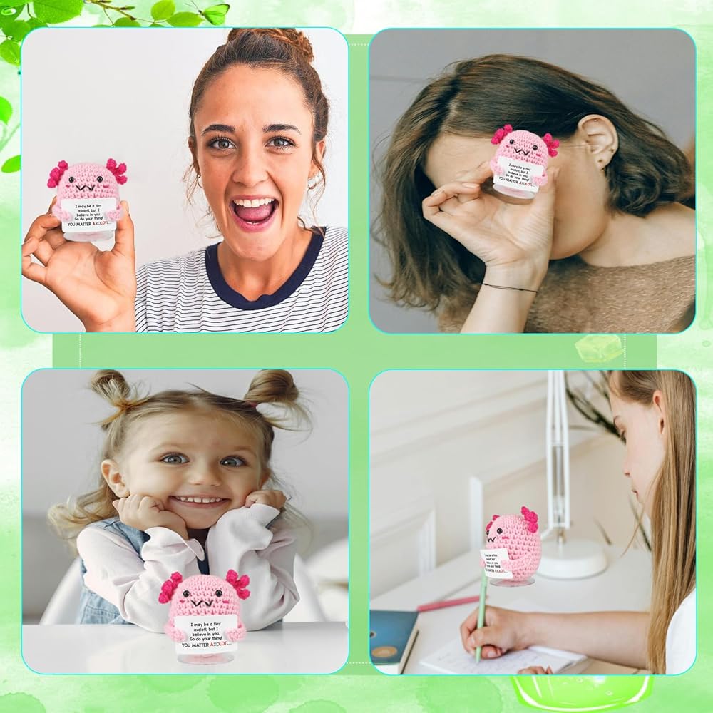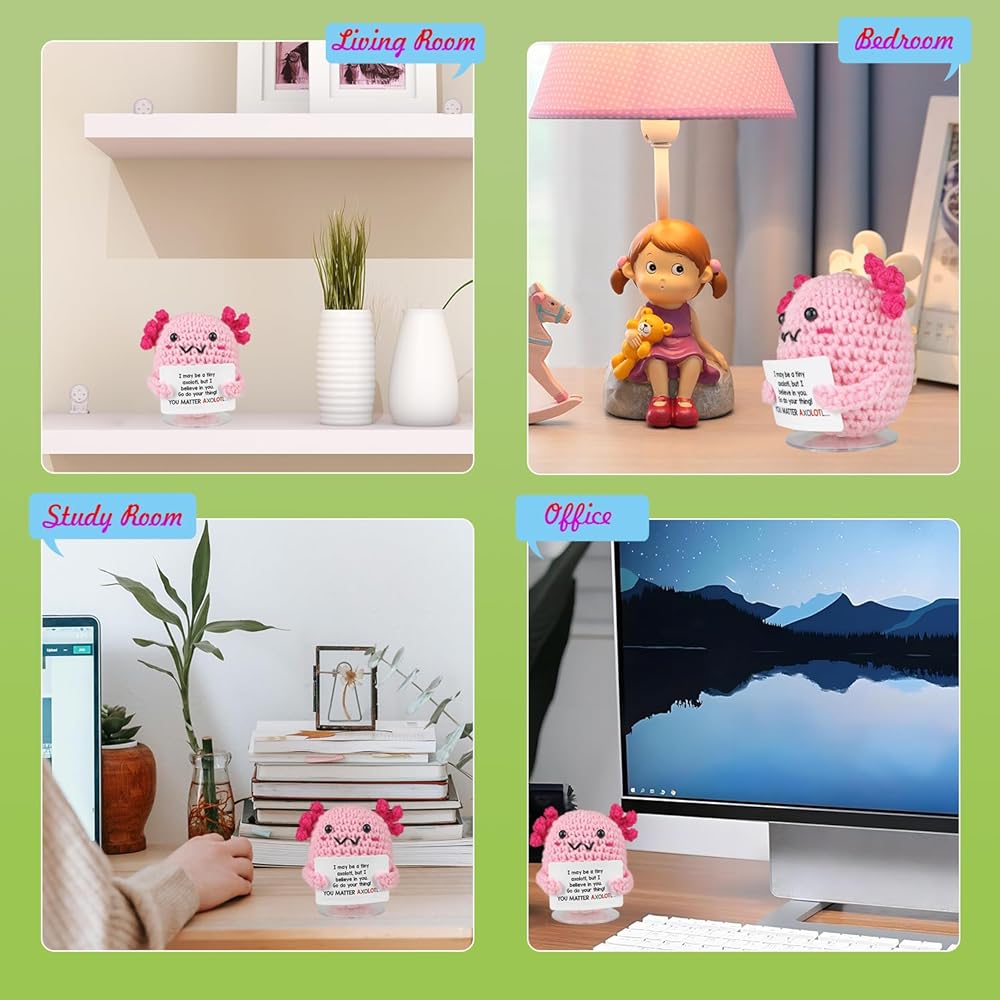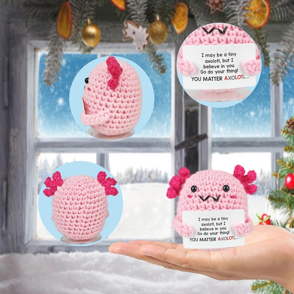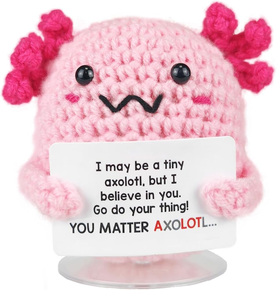 SZMDLX Crochet Axolotl,Mini Funny Knitted Support Crochet Animal with Stand for Birthday Mothers Fathers Day Festival Home Office Decor Desk Décor Friend Him Her