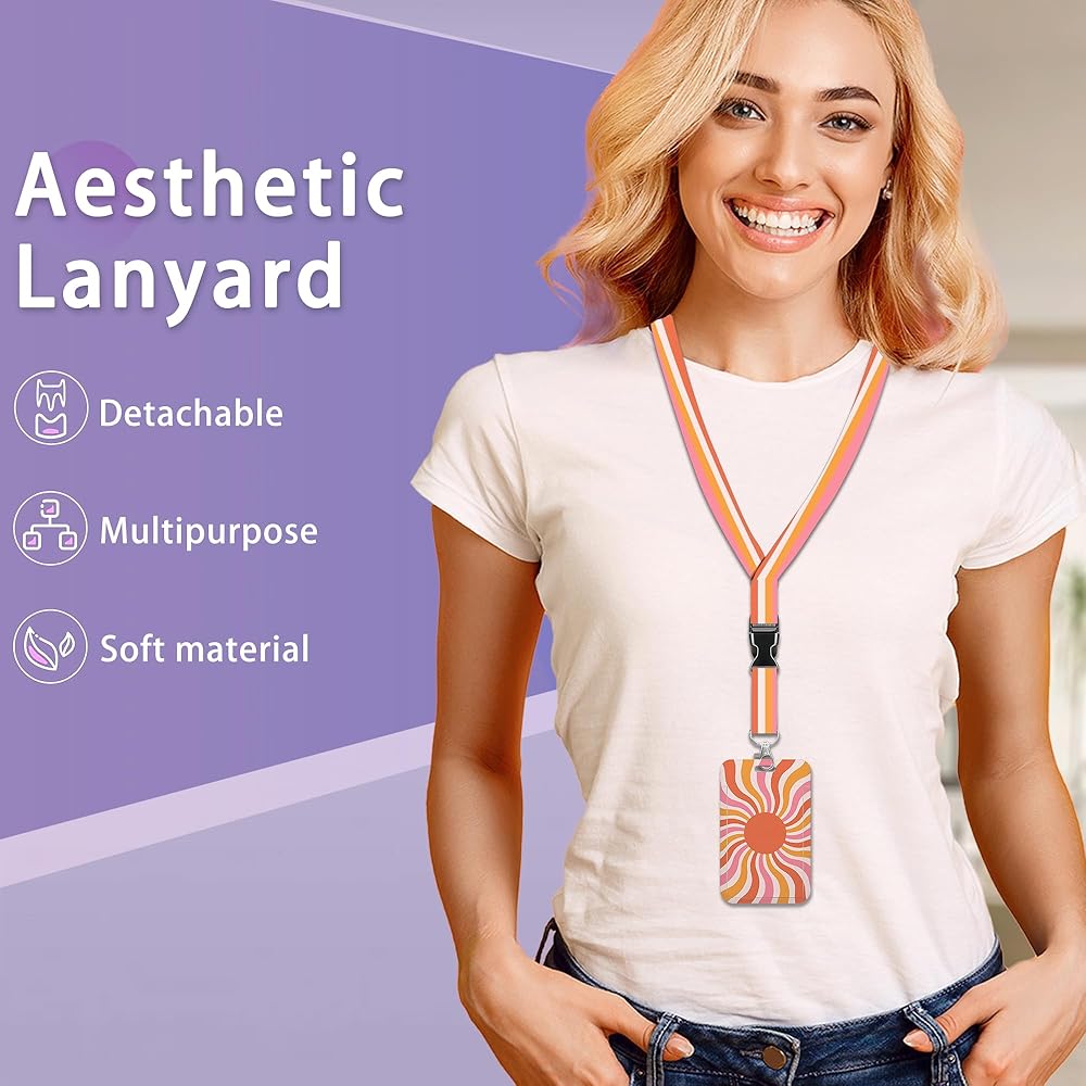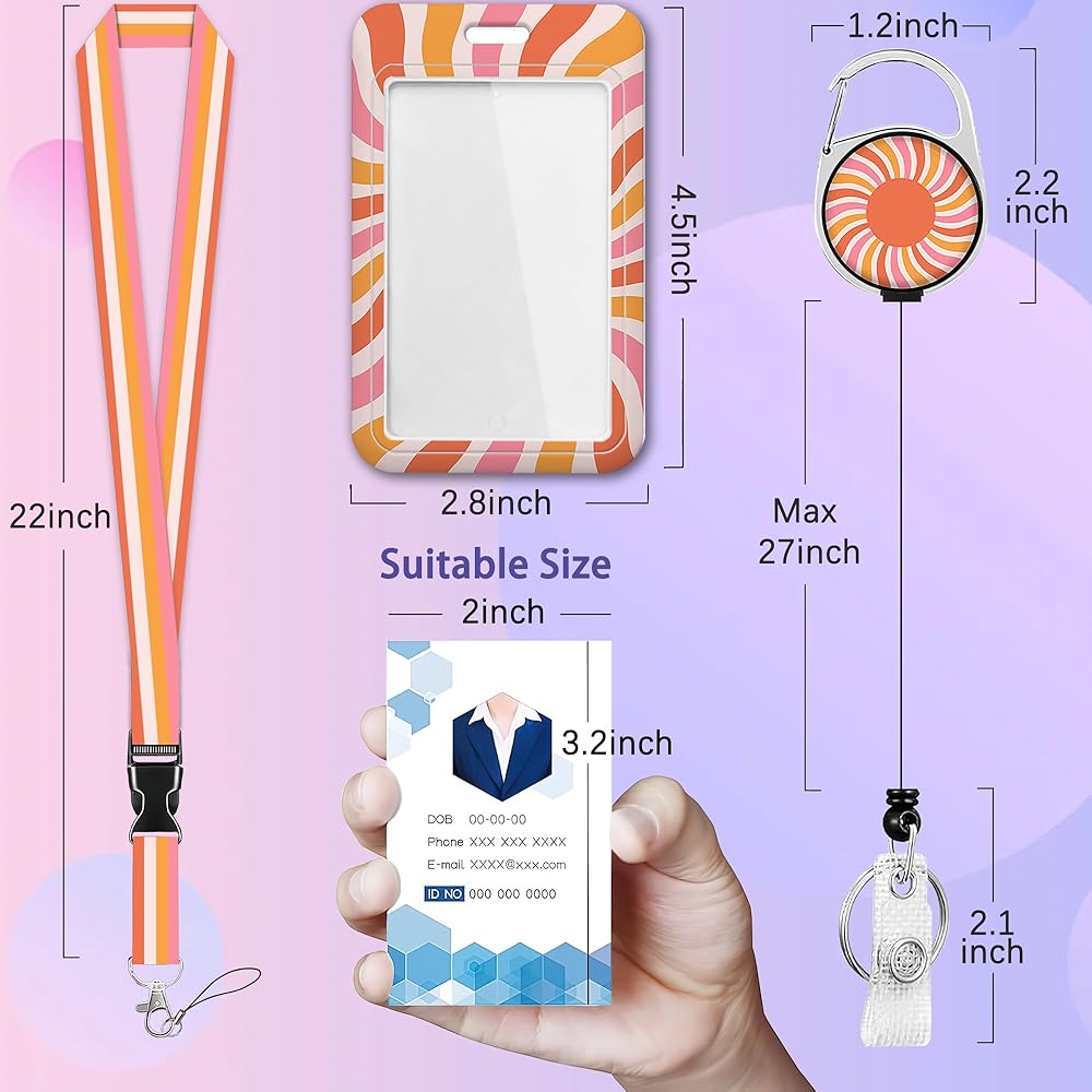 Boho Sun Lanyards for Id Badges,ID Badge Holder and Retractable Reel Clip Lanyard with ID Card Nametag Badge Holder for Nurse Teacher