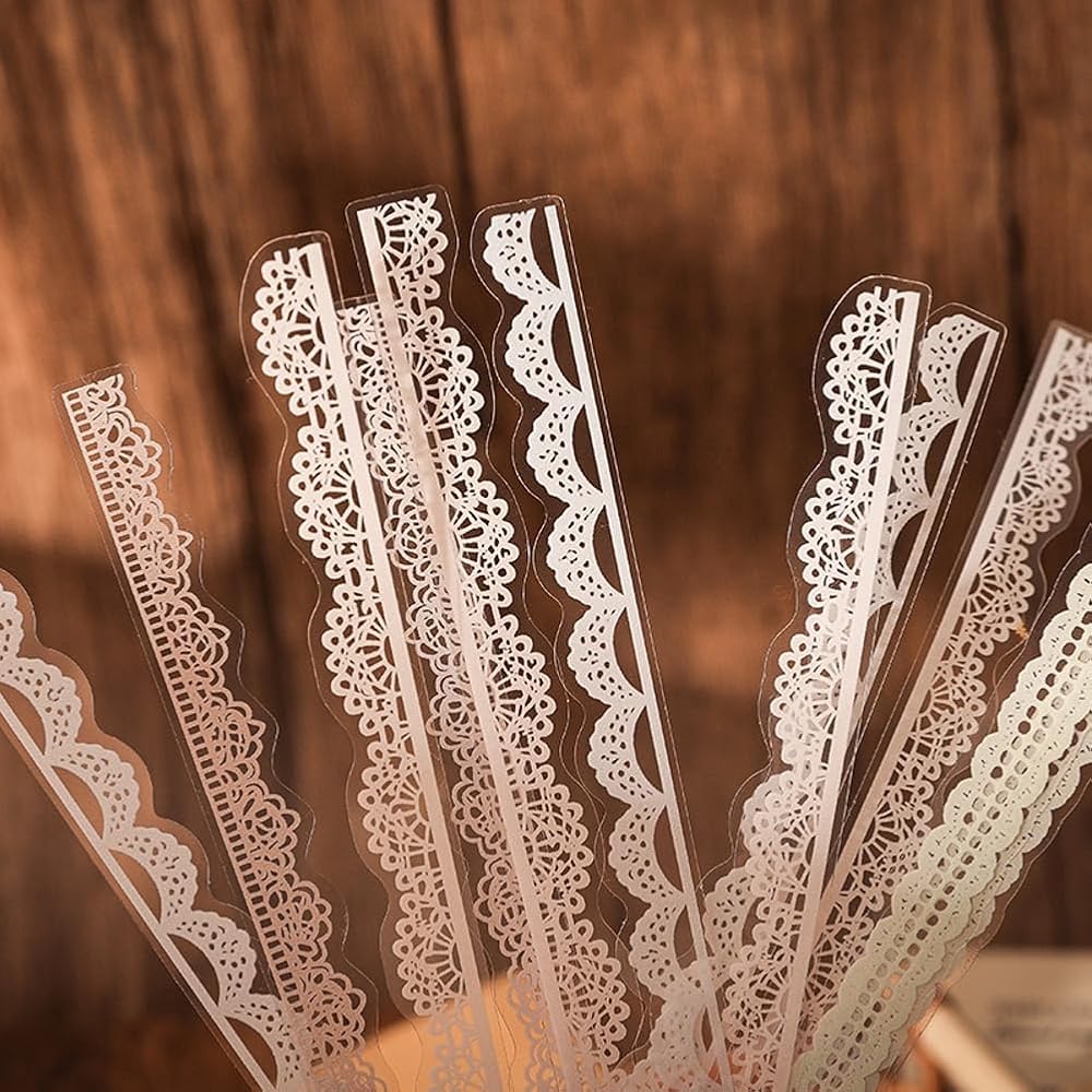 The Obujo 40 Pcs Lace PET Stickers HLMS are perfect for adding a touch of elegance to your craft projects. These stickers are made of high-quality PET material, also known as Polyethylene Terephthalate, making them reusable and water-resistant. With a glossy finish and classic style, these stickers measure 15 x 1.3 cm / 5.90 x 0.51 inch and come in 5 different patterns. They are suitable for indoor use and can be applied to various surfaces such as junk journals, scrapbooks, notebooks, college supplies, cards, envelopes, letters, and craft decorations. This pack includes 40 stickers, providing you with plenty of options for your creative endeavors. Recommended for all ages, these stickers are a great addition to your arts and crafts supplies.