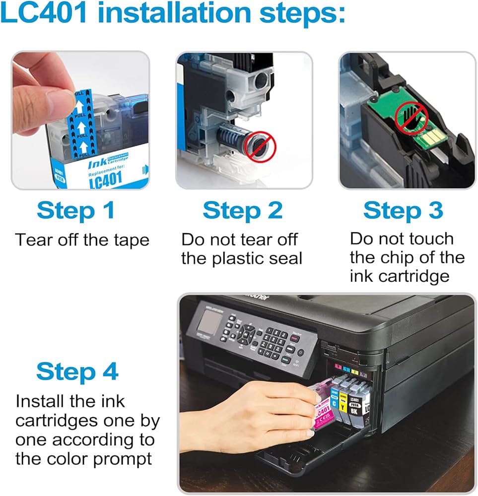 Printer Compatibility: LC401 and LC401XL are universal, both are used for Brother compact, affordable inkjet all-in-one printers MFC-J1010DW, MFC-J1012DW, MFC-J1170DW and MFC-J1800DW
