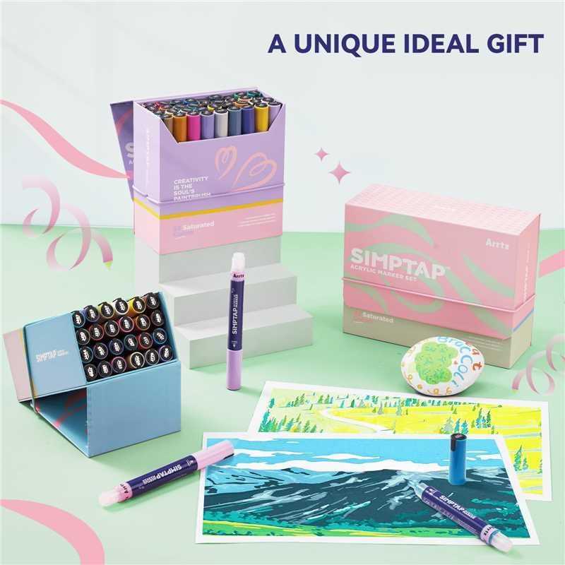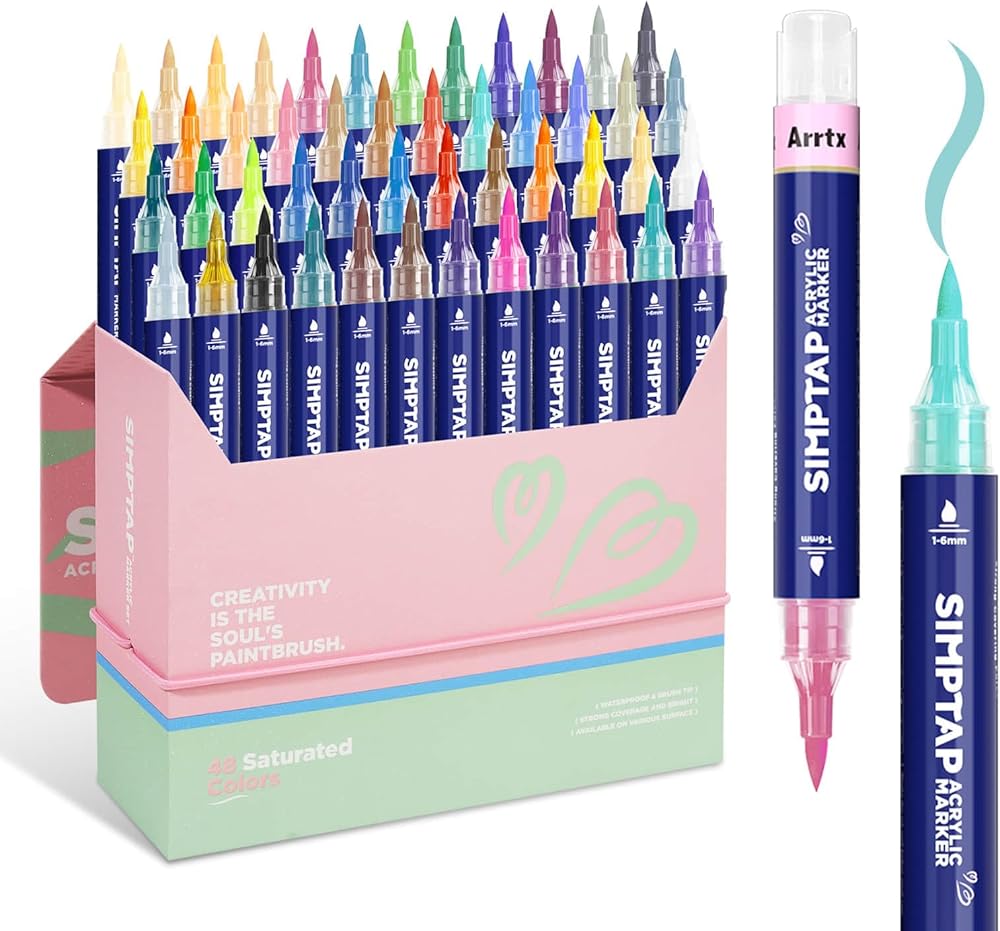 Work Well on Diverse Surface: Arrtx acrylic markers set provides water-based smooth ink and excellent coverage for a variety of surfaces, works for paper, cardstock, metal, rock painting, wood, plastic, canvas, fabric, stone, Easter eggs, easter decoration, metal, Christmas ornament, Halloween pumpkin painting, calligraphy, scrapbook, brush lettering, Christmas card, birthday , greeting card, or any DIY crafts projects and more. Let's express imagination!