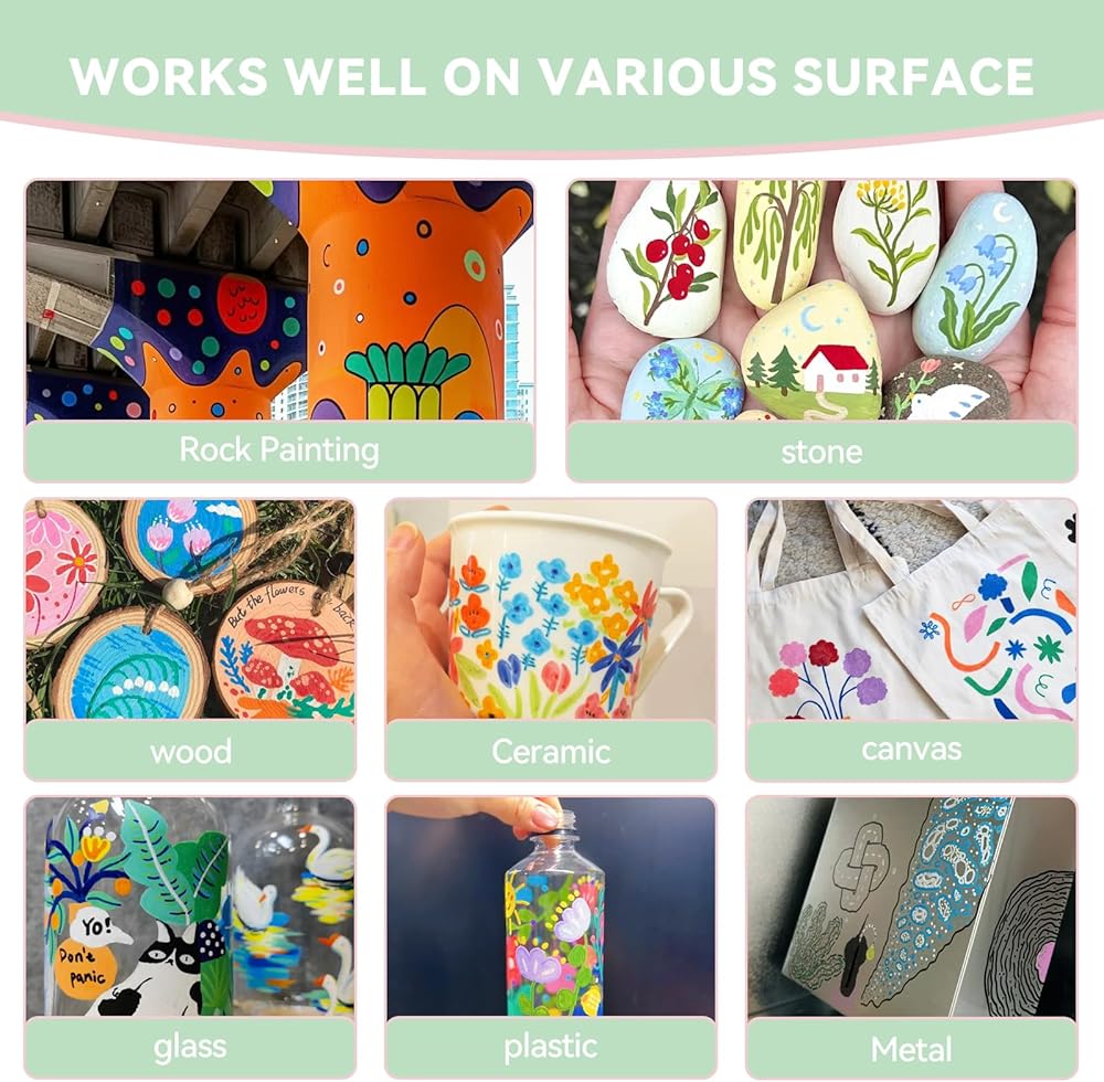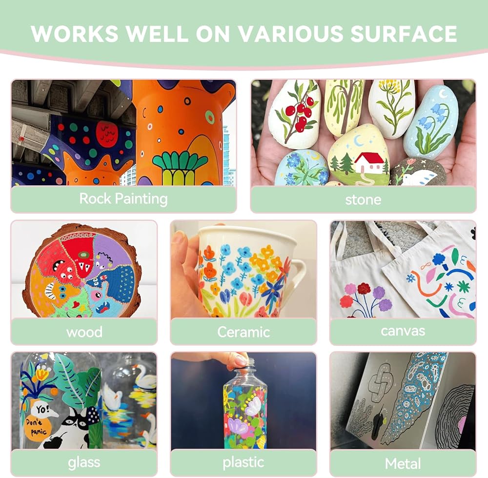 Features: 48 vibrant colors and long-lasting , quick dry, water-based and Large capacity ink, high covering, waterproof and permanent paint pens, never fade and never abrasion. These paint Pen markers flow without flooding or jamming, it's permanent when dry.