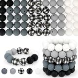 Package includes: You will receive a package of 100 pcs silicone beads in 5 color combinations, 20 pcs for each color(20 of them are printed silicone beads), each bead has a diameter of 15mm and a hole size of approximately 2mm. The number of rubber round bead is sufficient enough to DIY whatever you want.