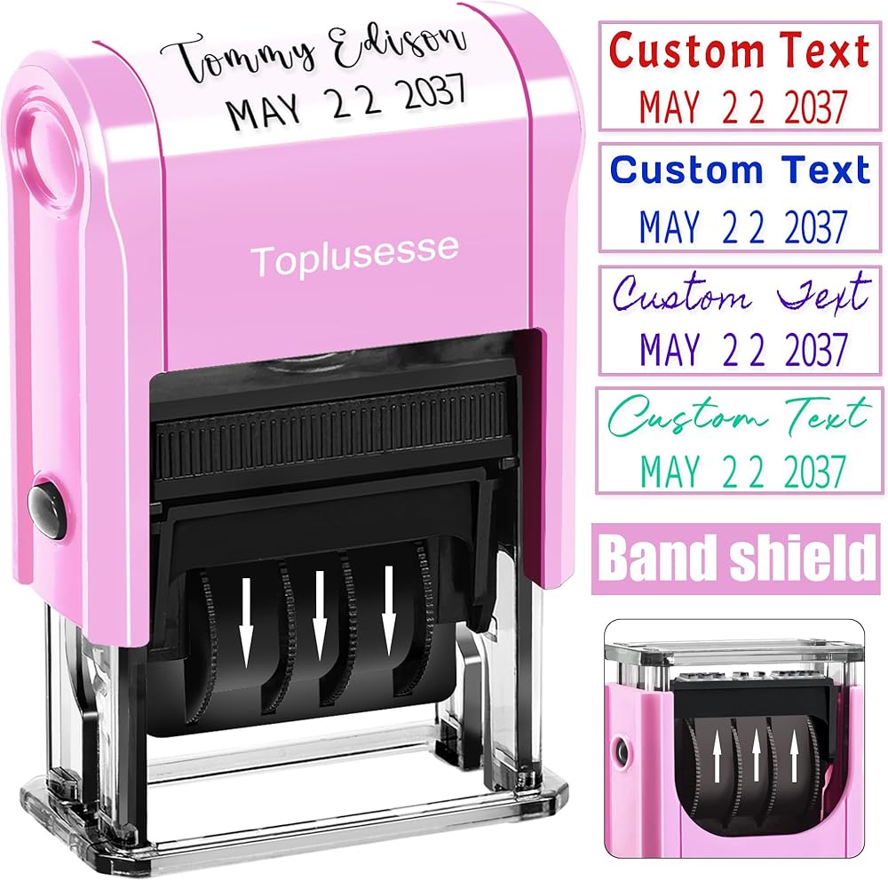 Custom Date Stamp Personalized Signature Stamp with Date Self Inking Signature Date Stamper for Business 1 Line Custom Text with Date Choose from Many Fonts and Colors Pink 2026-2037