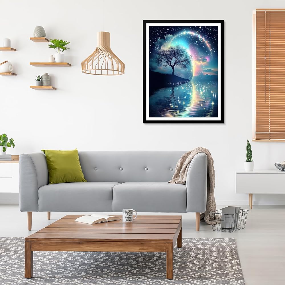 EOBROMD Tree Diamond Art Painting Kits, Full Drill Starry Sky and Lake Diamond Paintings for Adults Beginners DIY Paint Picture with Diamonds Pictures Gem Art for Home Wall Art Decor 12x16inch