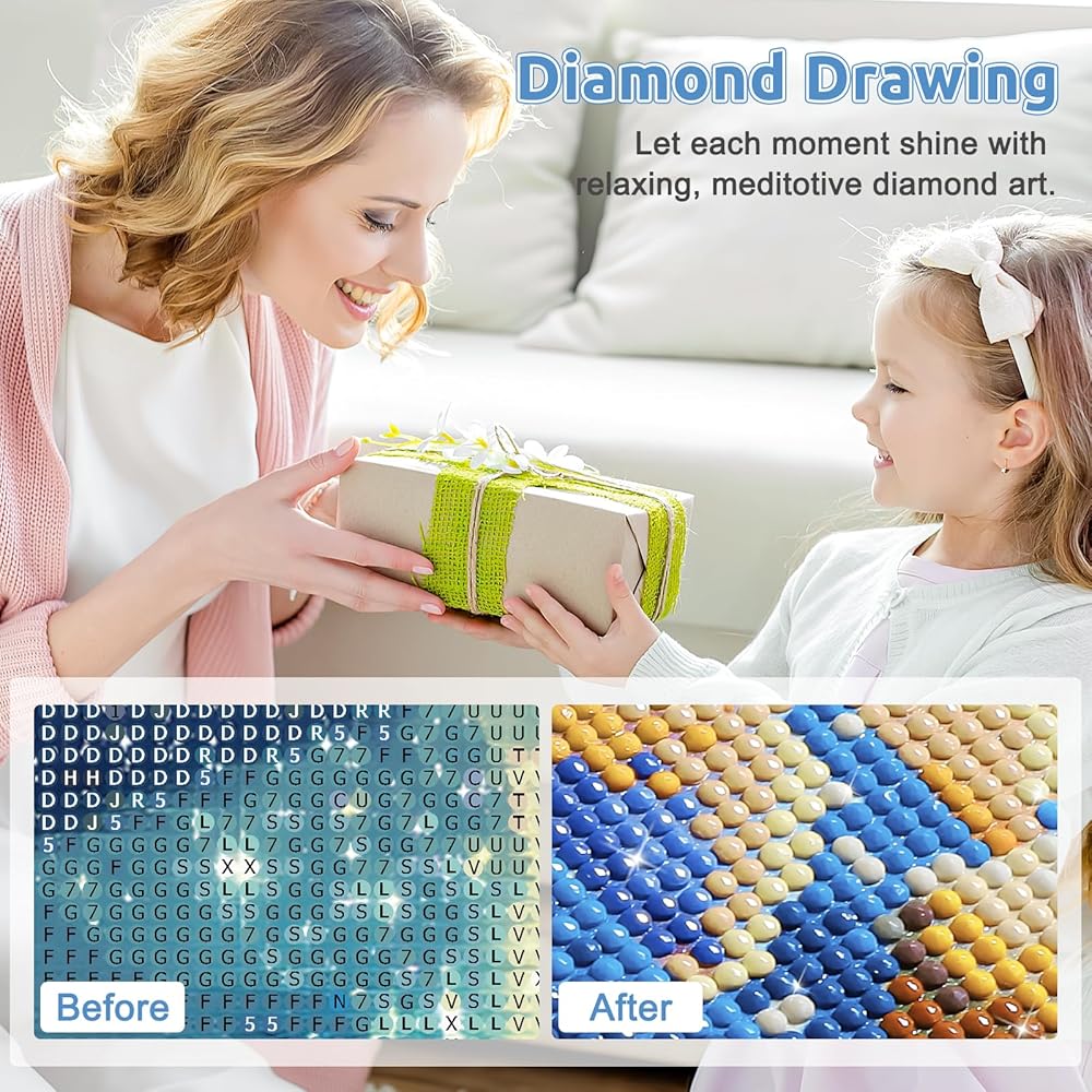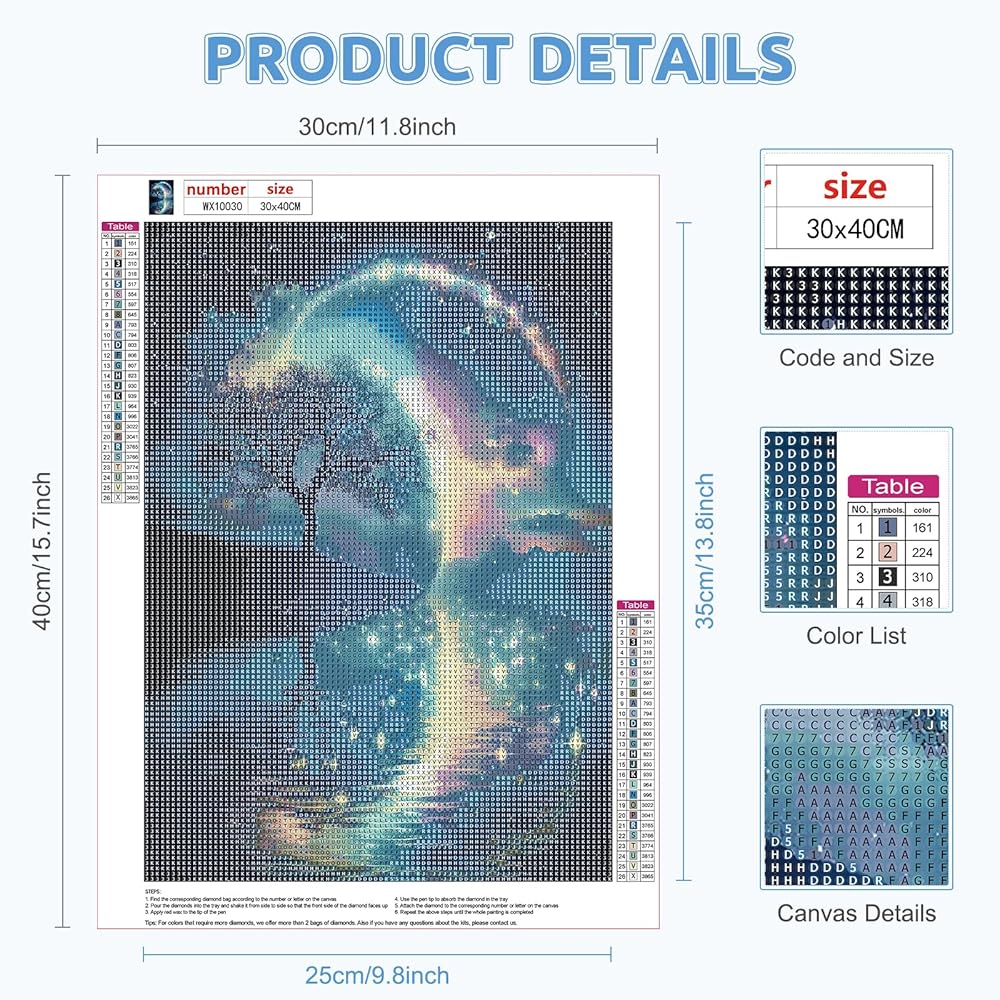 Diamond Painting Kit:The edges of the canvas have corresponding numbers and colors, and the combination of numbers and letters on the canvas are arranged with clear symbols, making it easier for you to read and easier to make, even for beginners.