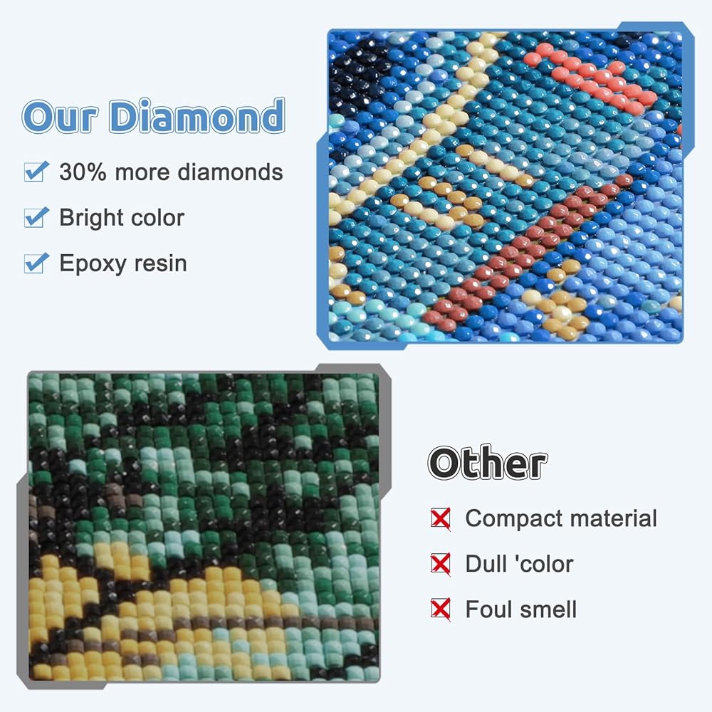 Exquisite Diamonds: Each diamond has strong three-dimensional effect, no odor, rich colors and will not fade. Each color has an extra 35% of diamonds, so you can use it without any worries.