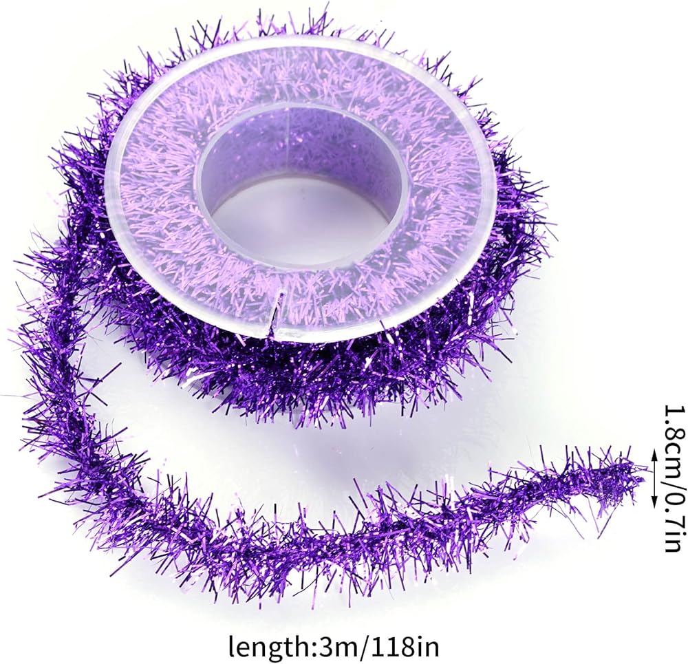 Product description: Tinsel garland,Christmas tinsel ribbon with 4 colors for Xmas tree decoration DIY craft,3.28 Yard for each roll,4 Rolls total and for festival decoration or DIY crafting.