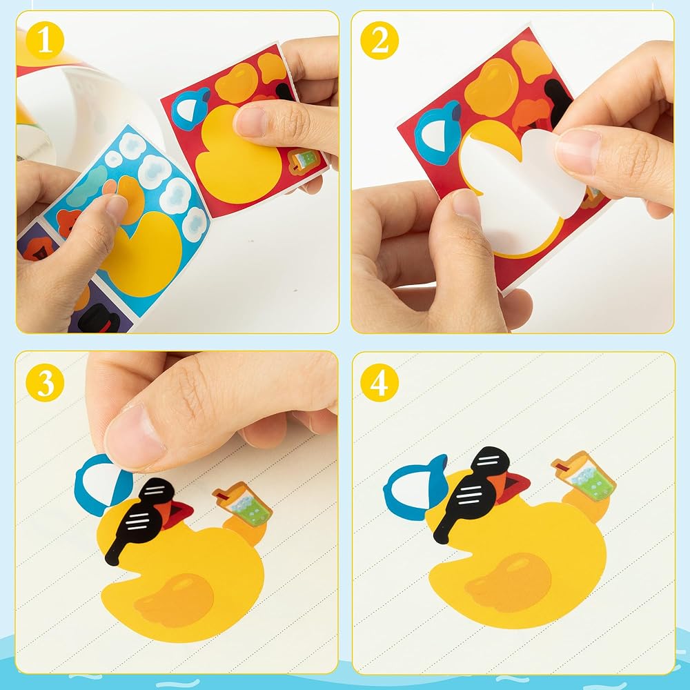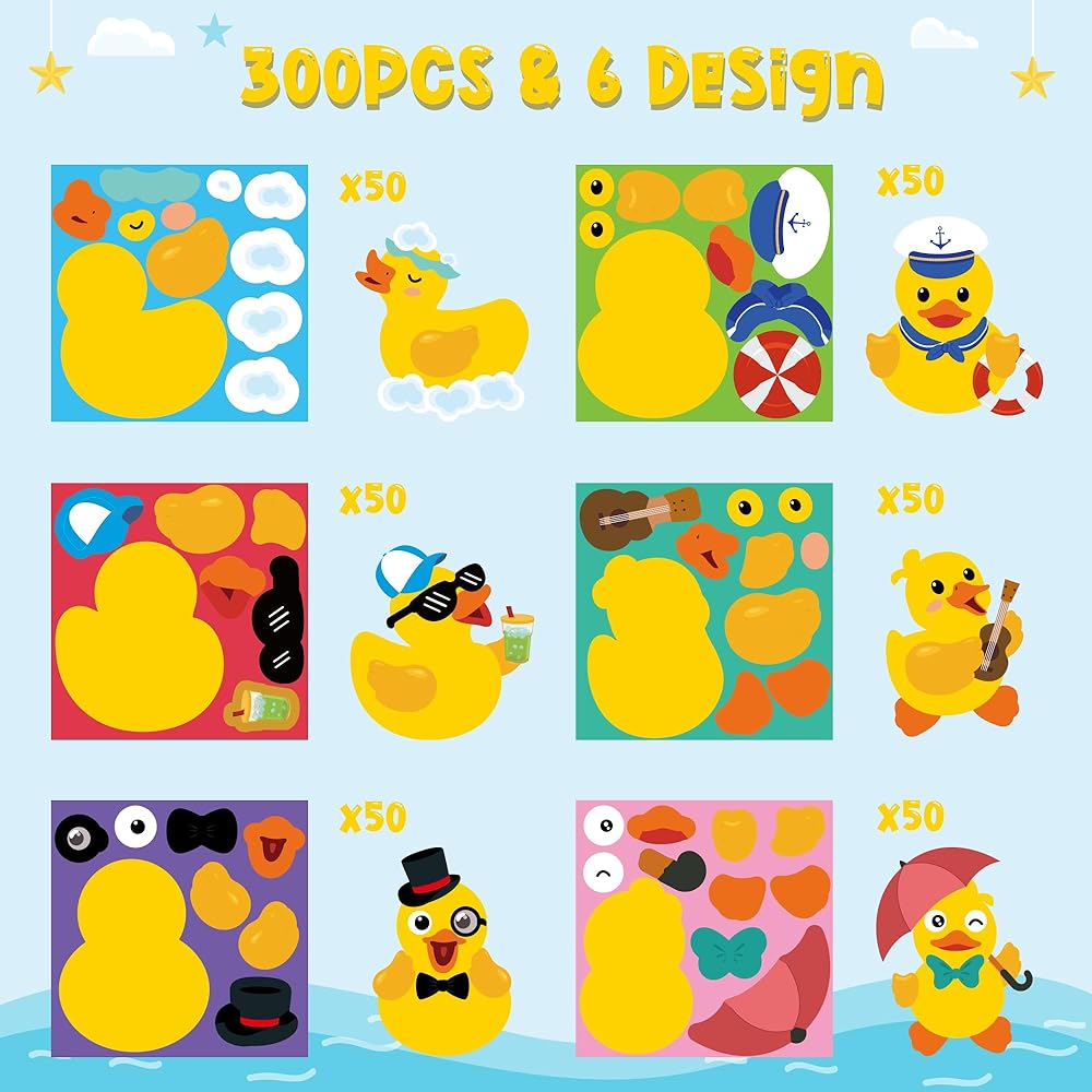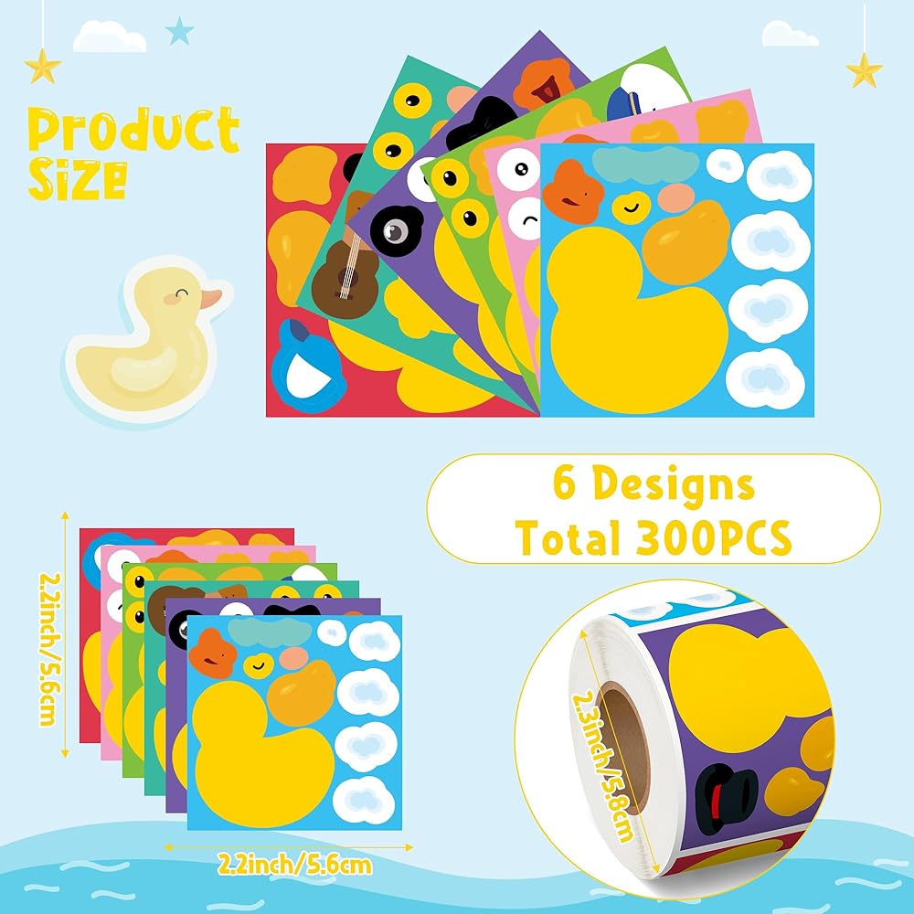Haooryx Duck DIY Sticker Roll - 300Pcs Make A Yellow Duck Water Bottle Sticker Make Your Own Self Adhesive Waterproof Vinyl Decal DIY Gift Activity Pad Valentine’s Day Birthday Party Favor Phone Case